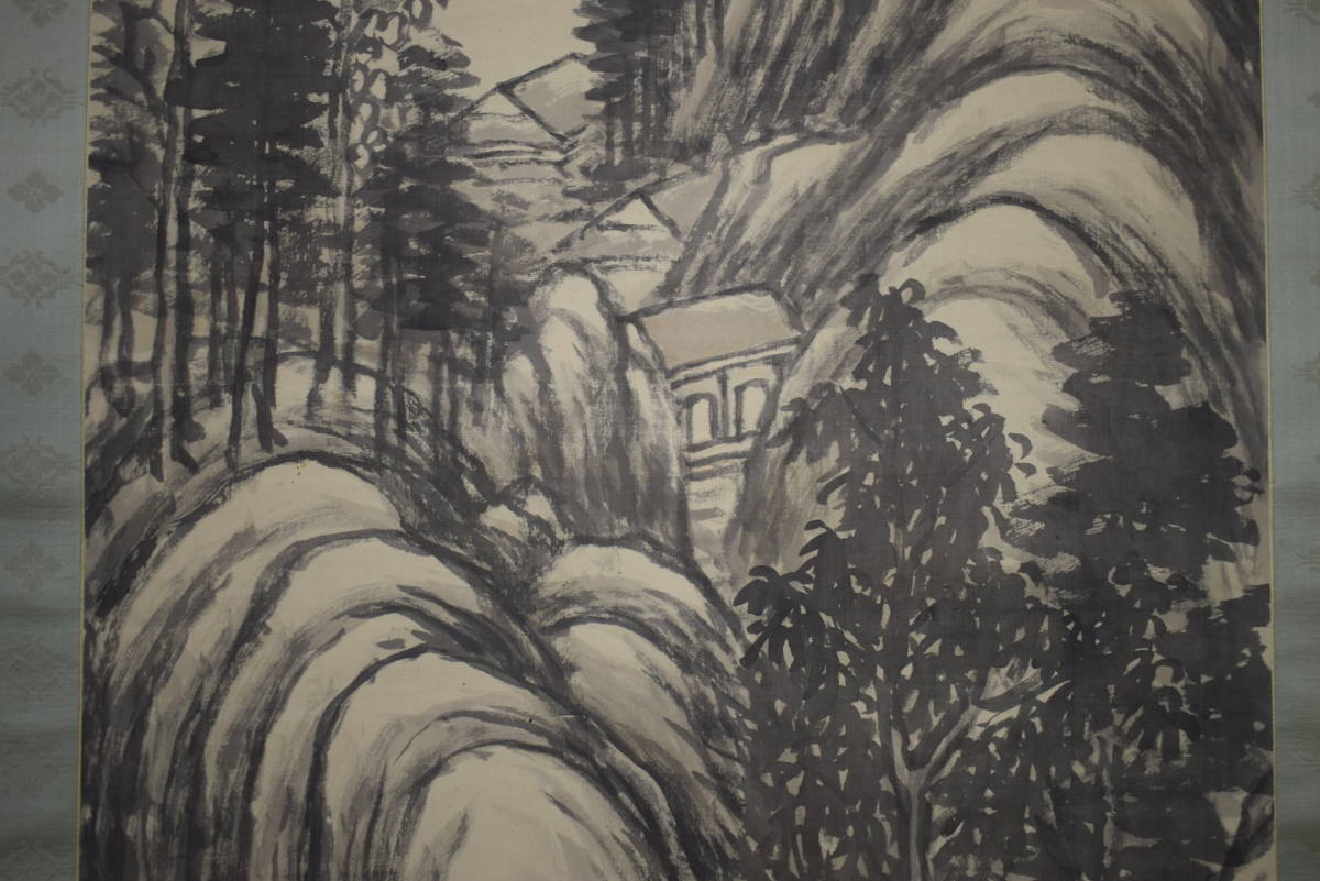 【真作】//浄土真宗/西本願寺/津田白印/山水人物図/絹表装/桐共二重箱付/布袋屋掛軸HH-825