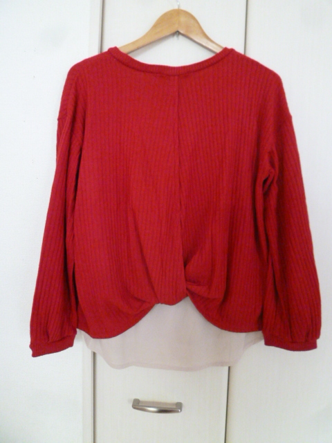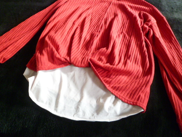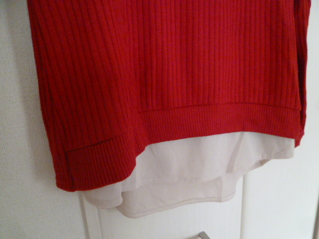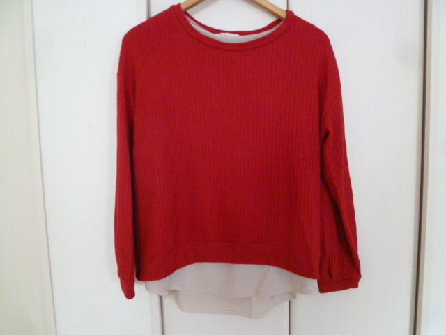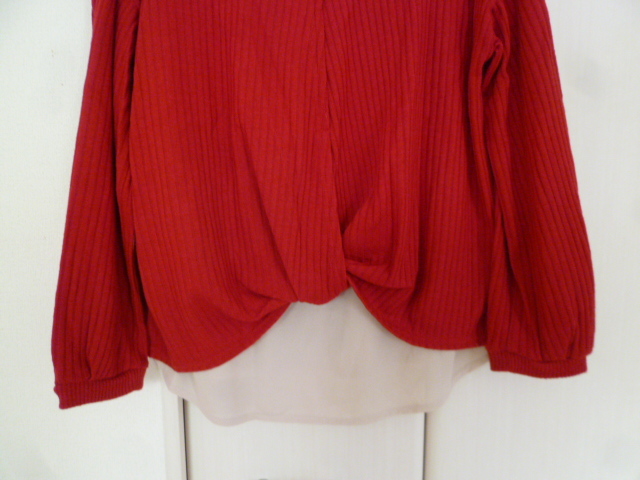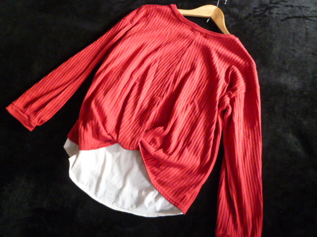 Alphabet's alphabet/アルファベッツアルファベット○赤異素材ブラウスフェイクツイン風ドッキングニットトップスF/後ろ変形○⑥ST1022