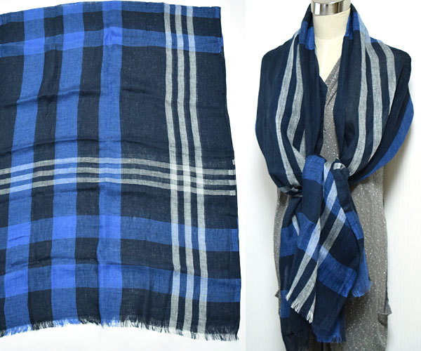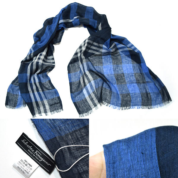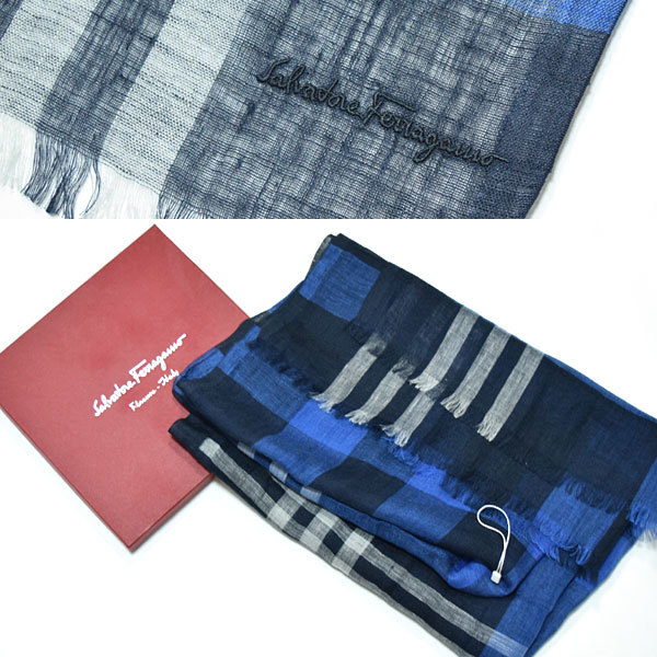 ■Salvatore Ferragamo■ロゴ刺繍入りチェック柄大判リネンストール/2020-1f | |