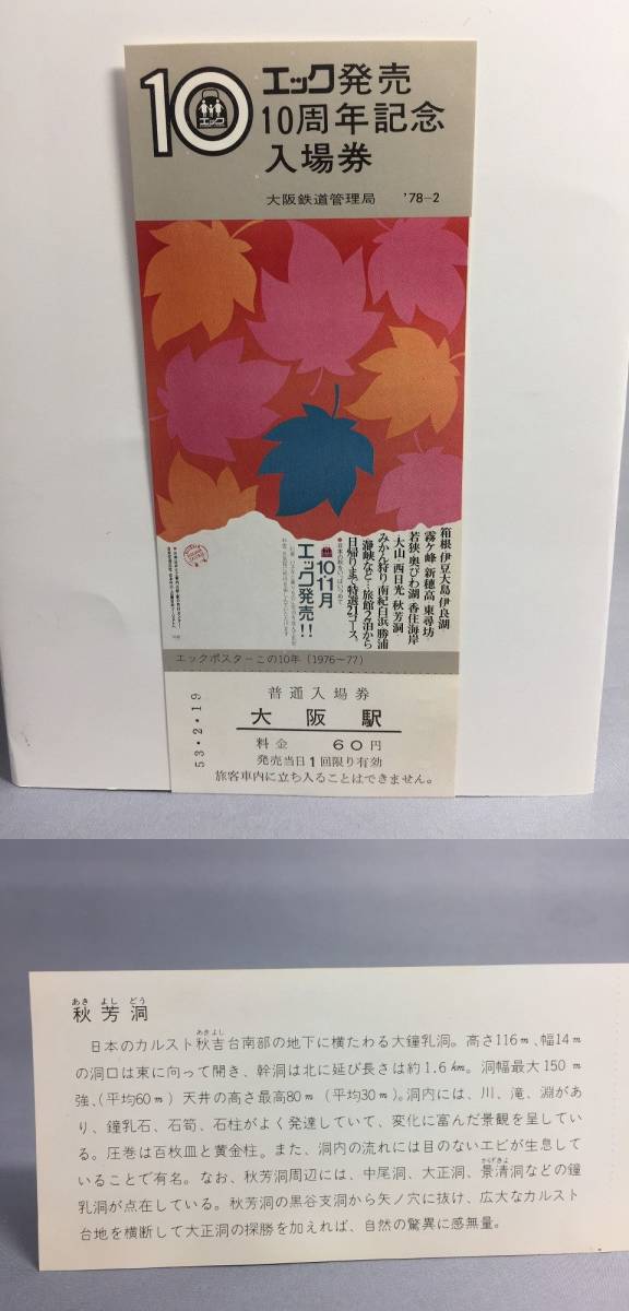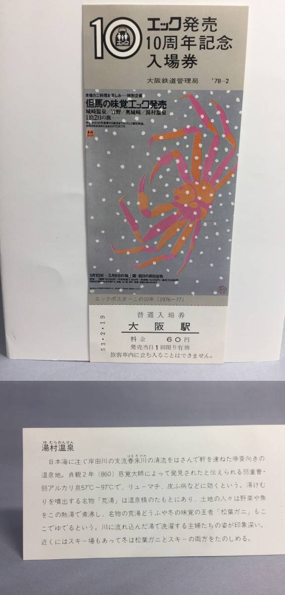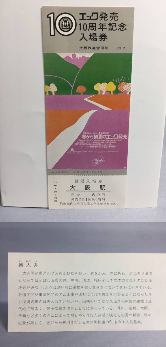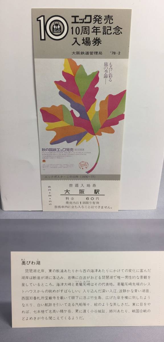 国鉄・大阪鉄道管理局 昭和53年2月10日 エック発売10周年記念入場券(第4回)記念入場券5枚 【K13-5385】