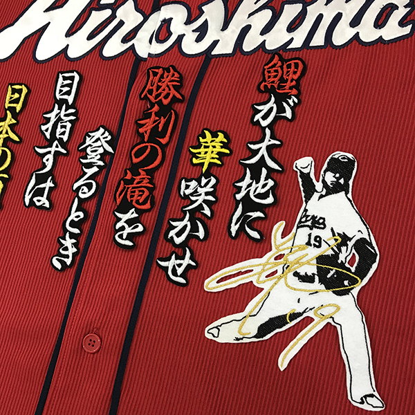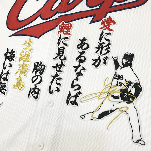 商品説明 | 広島 カープ 野村祐輔選手のサイン付きシルエット、アイロン接着用刺繍ワッペンの出品です。 アイロンにて簡単に接着可能♪♪ ※写真のユニフォーム、応援歌ワッペン等、他の装飾品はついておりません。 |