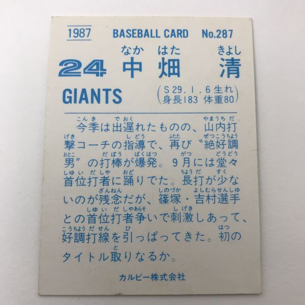 1987年 カルビー プロ野球カード 287番 巨人 中畑 87年   【管理NO:202-26】