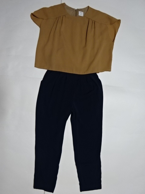 サイズは38です。実寸のサイズですが、丈は85.5センチ(股上まで)、身幅は43センチ、股下は63.5センチ、裾幅は16.5センチです。