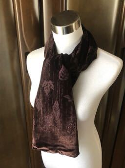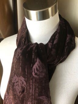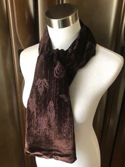<商品説明>フルラのリーフがモチーフのスカーフです。ベルベットのような素材で裏地はシルク100%です。