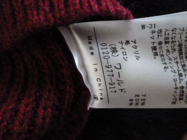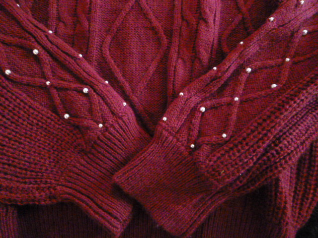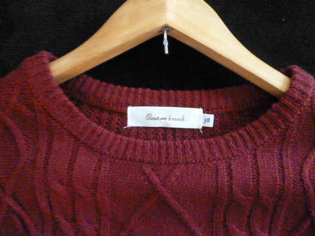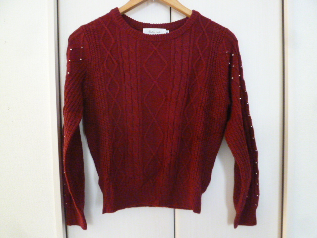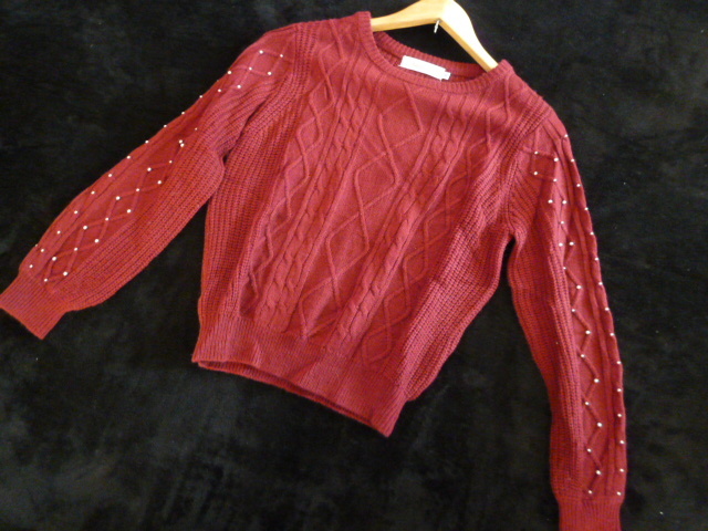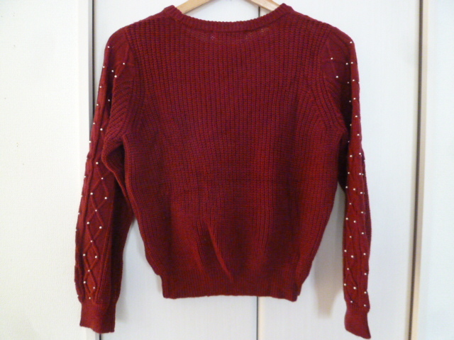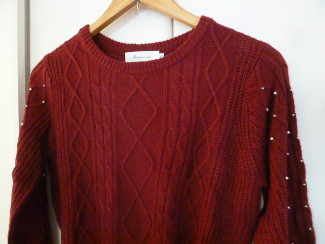 Couture brooch/クチュールブローチ○あずき色袖パール付きニットセーター38/ボルドーワイン色違い紺あり長袖トップスワールド○ST1015