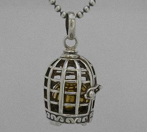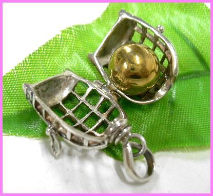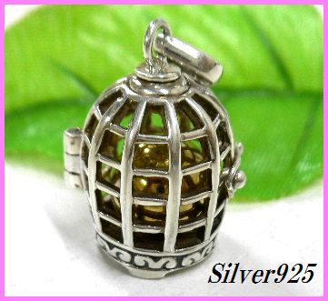 シルバー925銀の鳥カゴ バスケット ガムランボール/ペンダントやストラップに◎