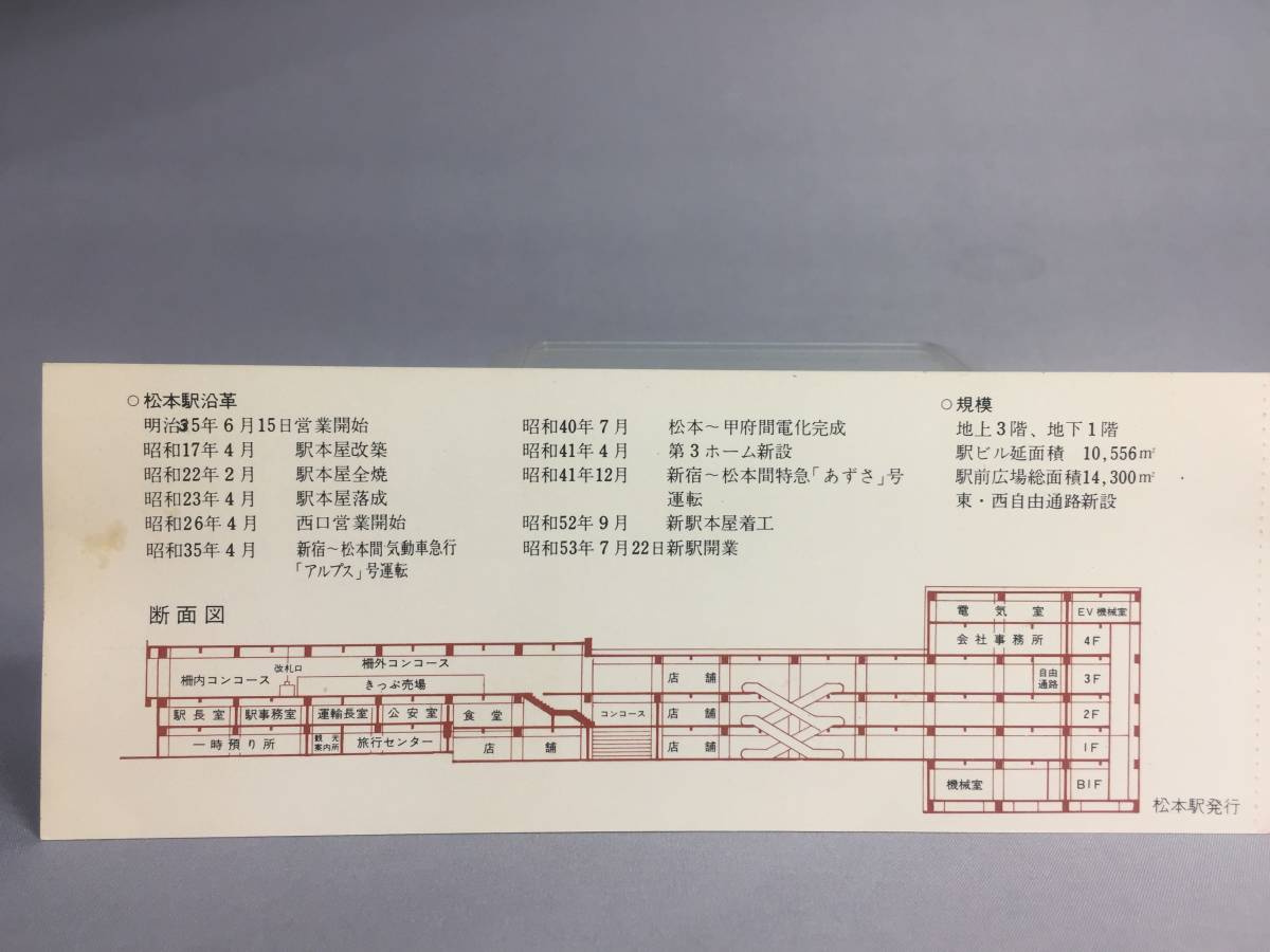 国鉄・長野鉄道管理局 昭和53年7月22日 松本駅改築・駅ビル開業記念 急行券1枚 【K14-0046】