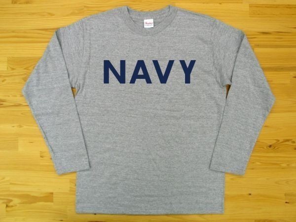 NAVY 杢グレー 5.6oz 長袖Tシャツ 紺 S ミリタリー ロゴ ネイビー 海軍