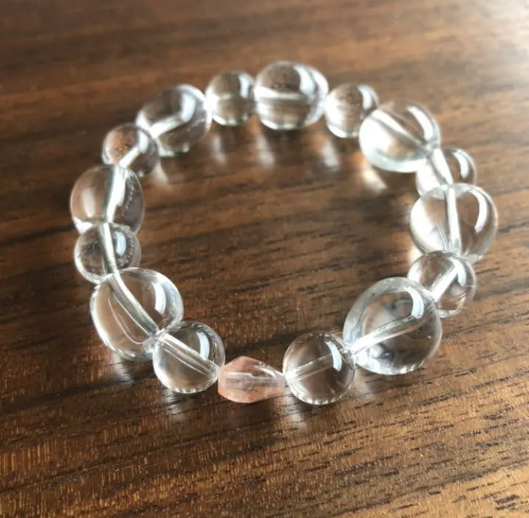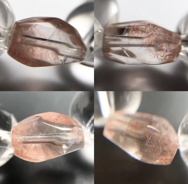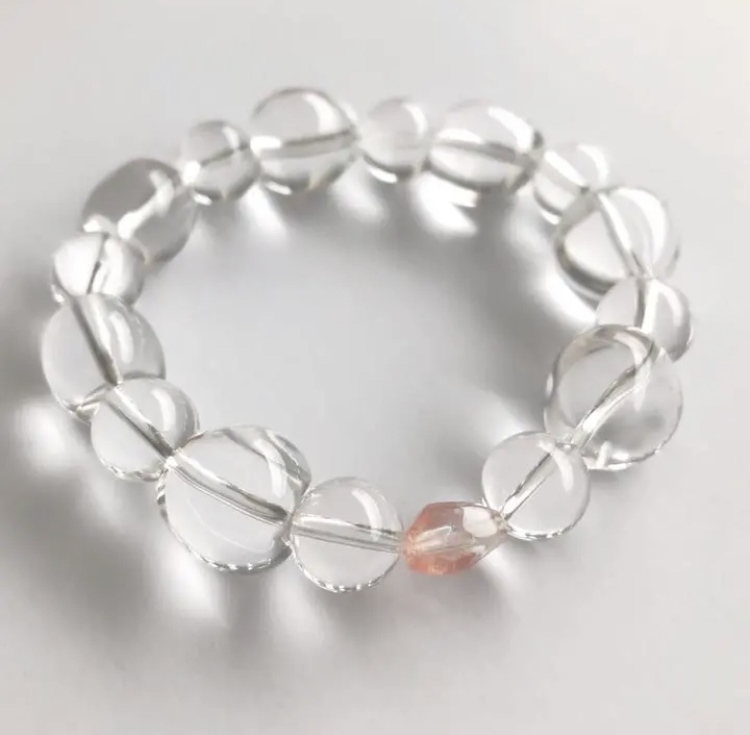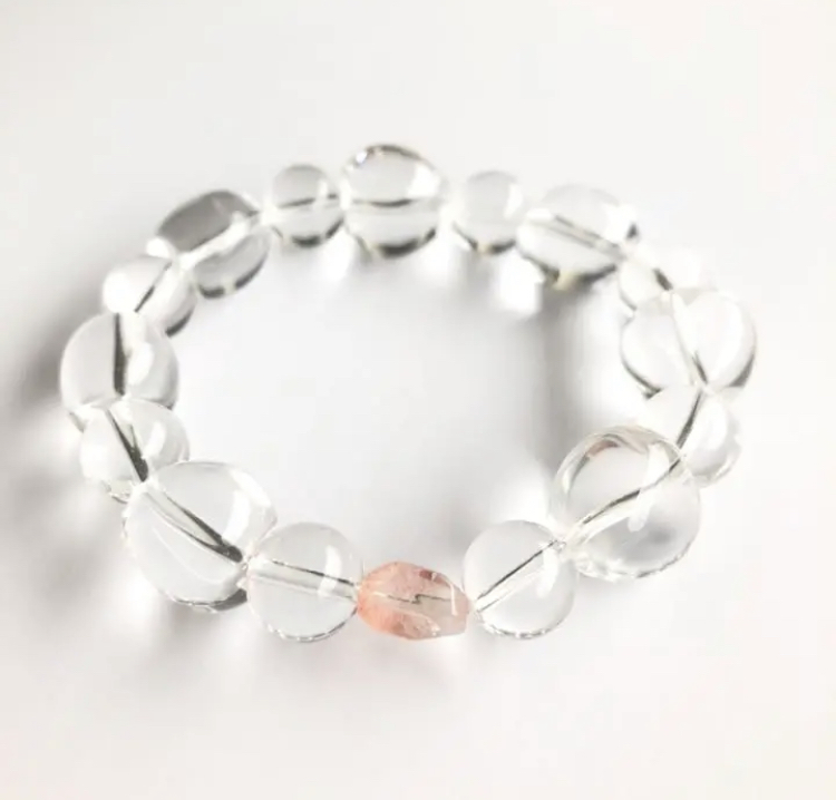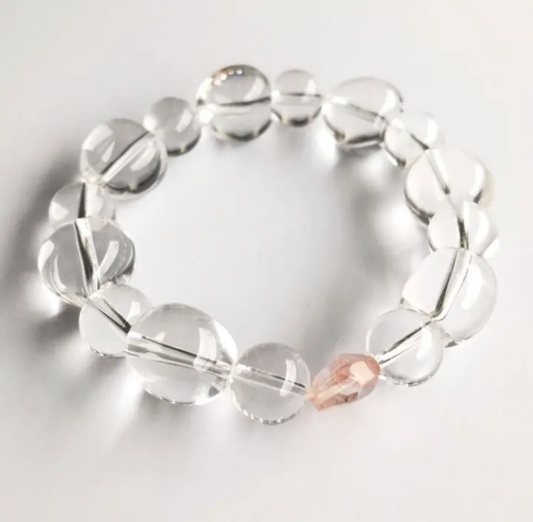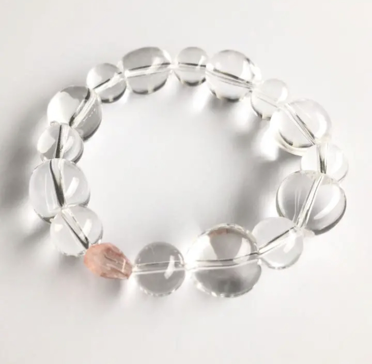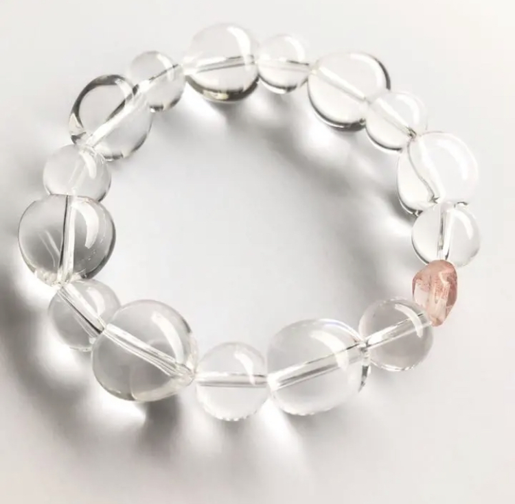 希少なカザフスタン産ストロベリークォーツとブラジル産の高品質天然水晶のデザインブレスレットです。