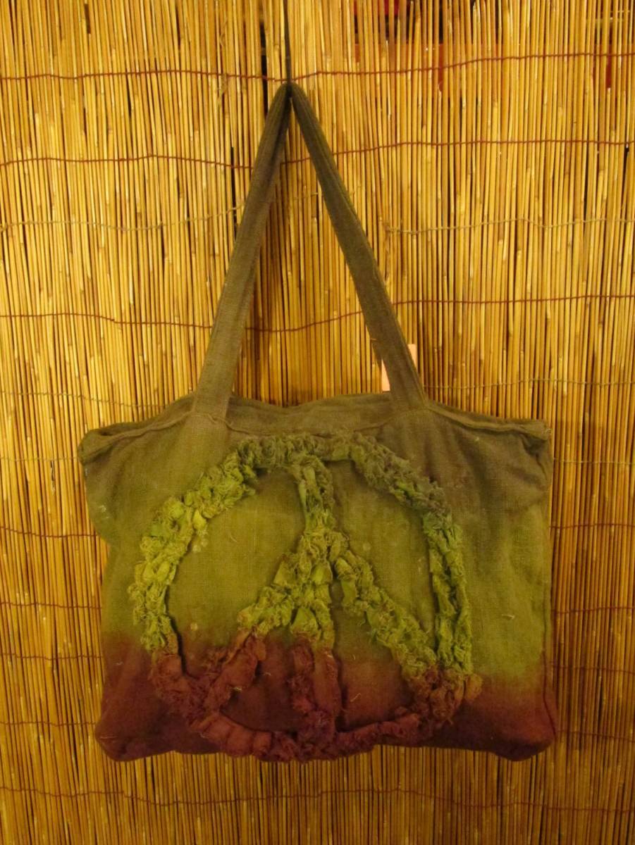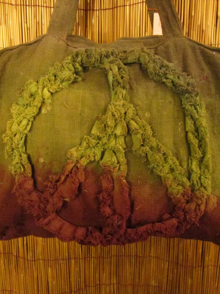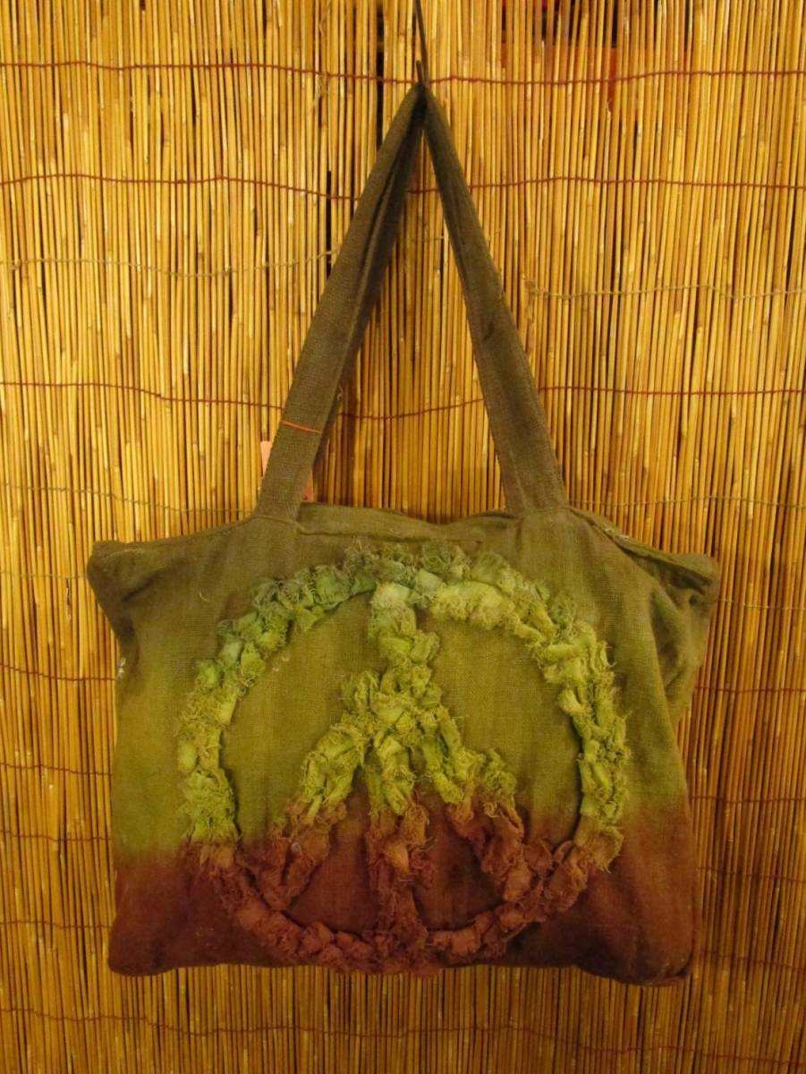 ②新品*男女兼用*粗織りコットン素材*手染め*ピースマーク*ボストンバッグ