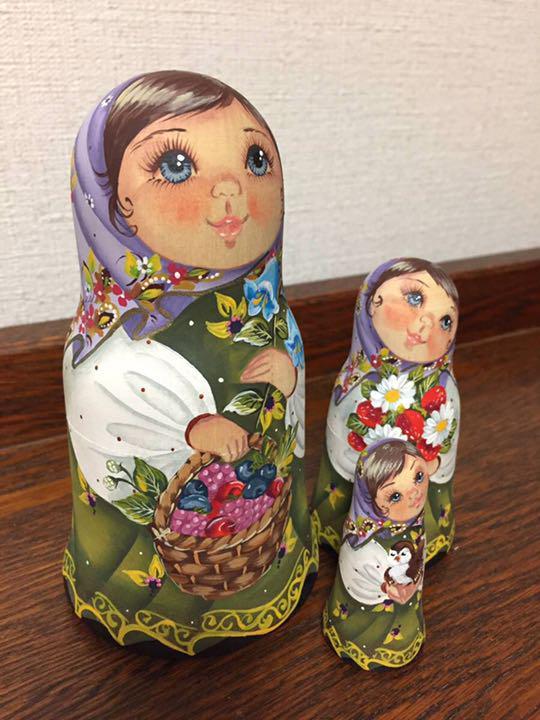 ロシア雑貨☆マトリョーシカ(3ピース)スベトラーナ・ニコラエワ作 コブロフ工房 レア