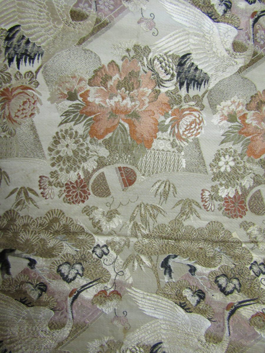 柄が良いです。裏表柄が違います。全体に傷み汚れなく綺麗ですが半幅帯と使用したのか真ん中に折り跡があります。