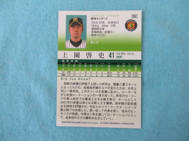 ★BBM 2008★1st Version〔086 上園啓史 阪神タイガース〕トレカ♪