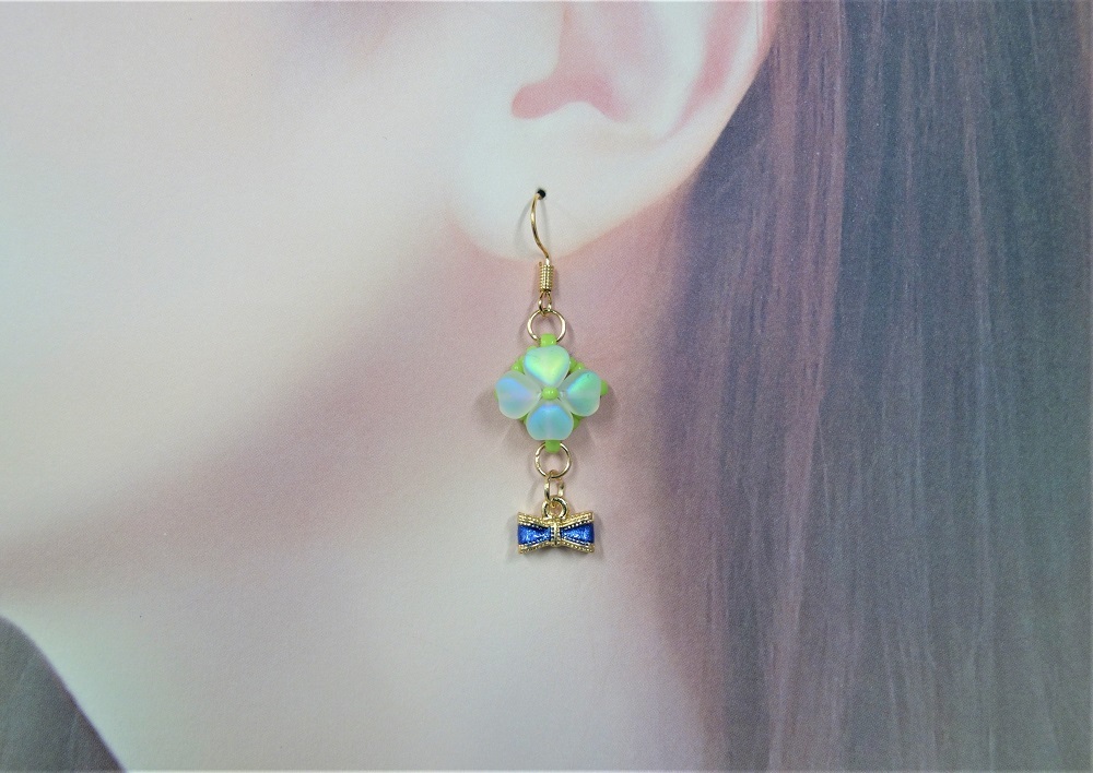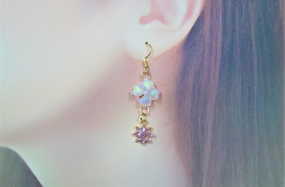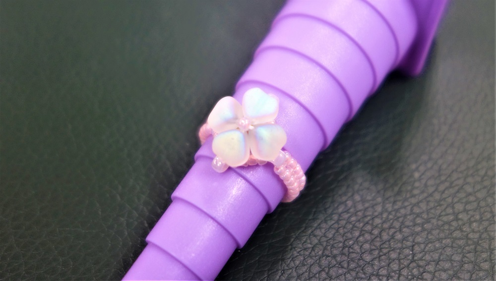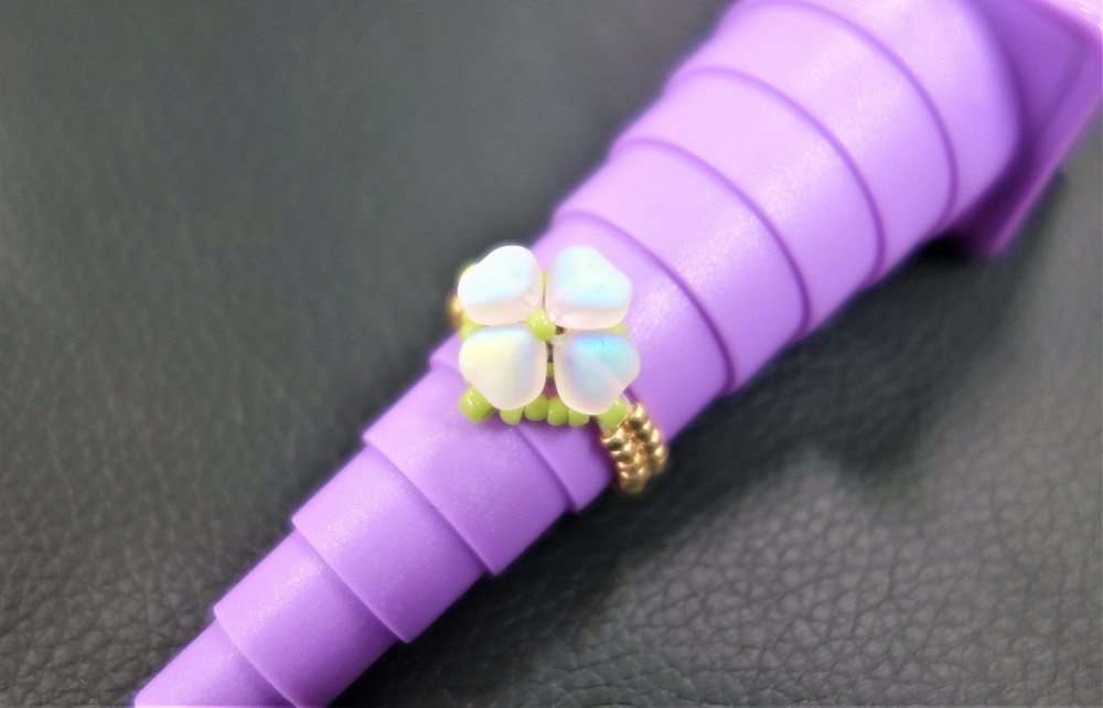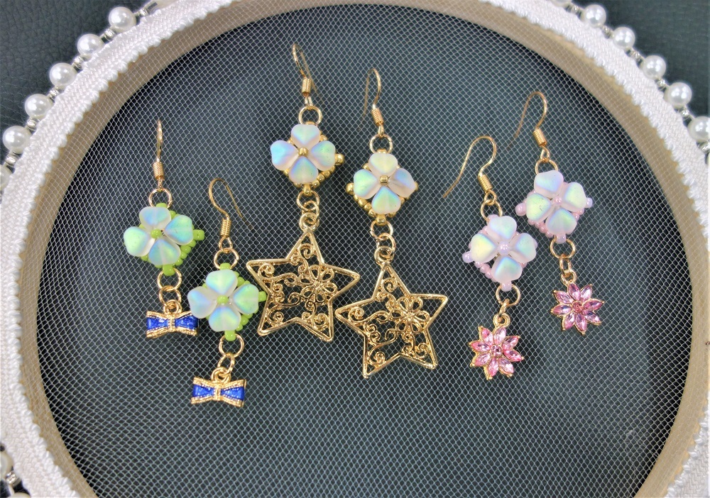 【ビーズ編み/四つ葉模様のピアス3セット&指輪3個一括販売】送料無料/ハンドメイドアクセサリー