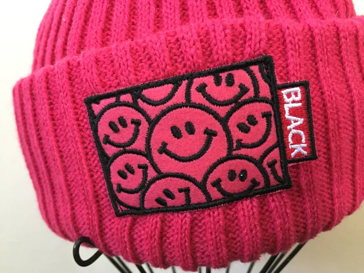 ★可愛いワッペン付きのリブ編みニット帽★9945