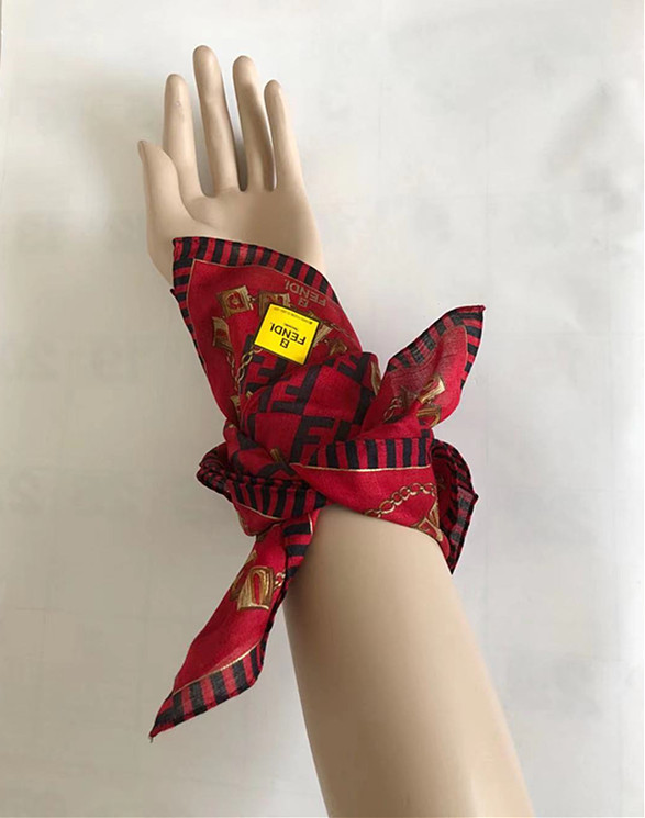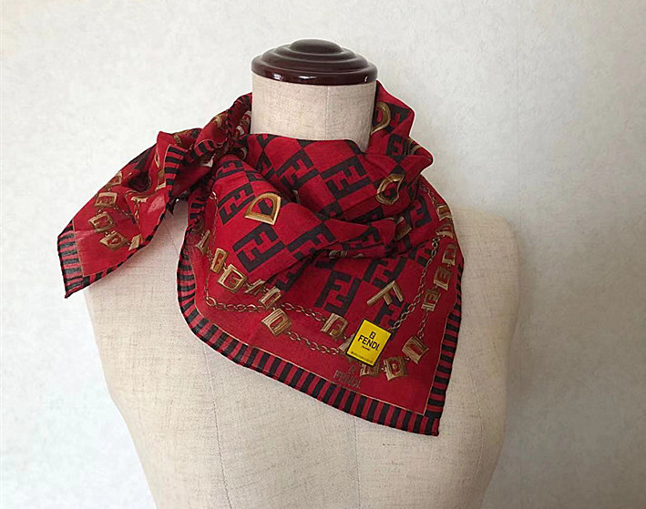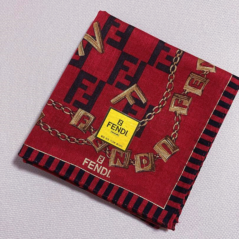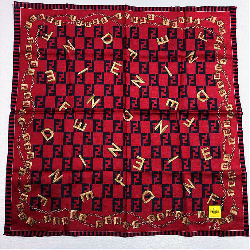 新品フェンディFENDI◆超人気【レア柄】ダブルFズッカ柄大判ハンカチ★50㎝ミニスカーフ膝掛け