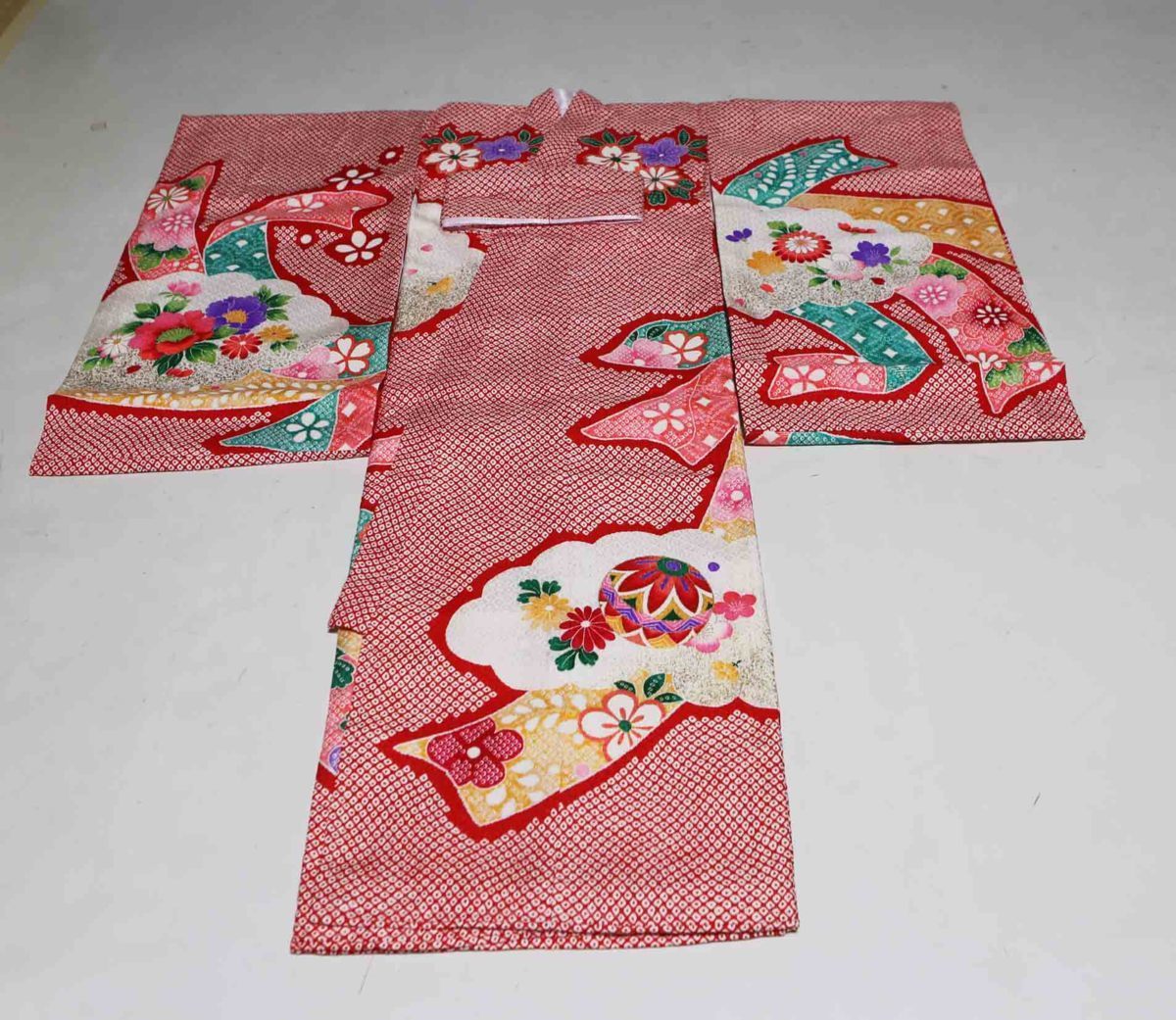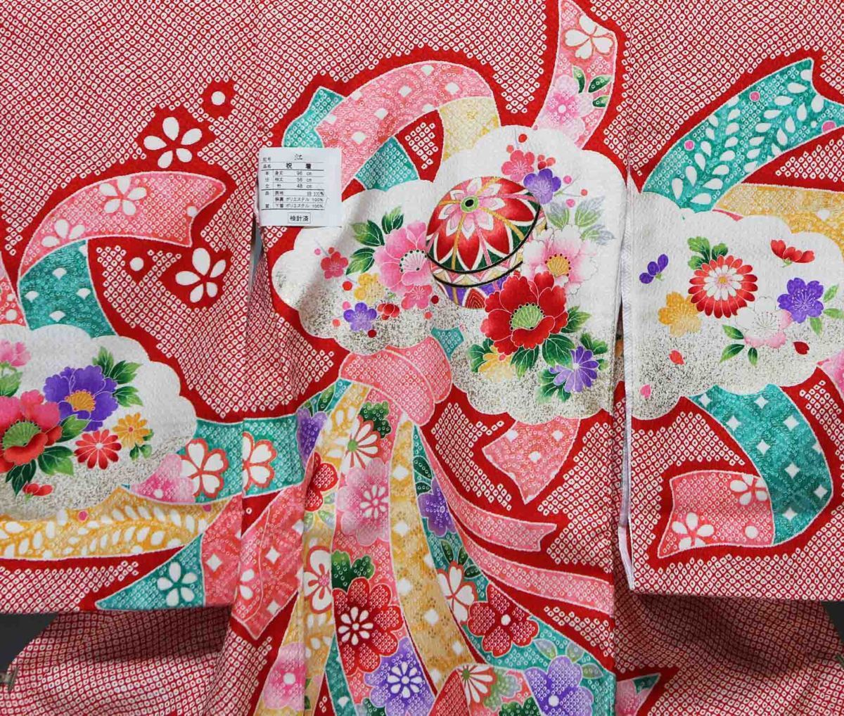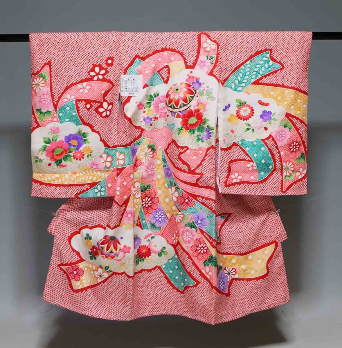 疋田模様(絞り模様)は 染めです 表地は正絹 裏地ならびに襦袢は ポリエステル 納品時は 祝い着物専用箱(紙製)に入れて納品します | |