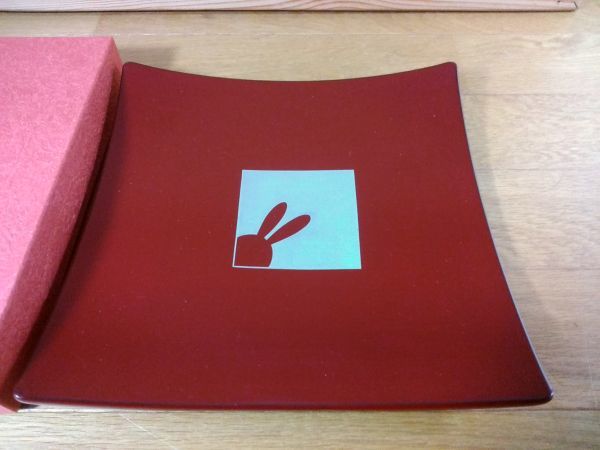 スクエア皿 越前塗り 朱兎 送料1000円~
