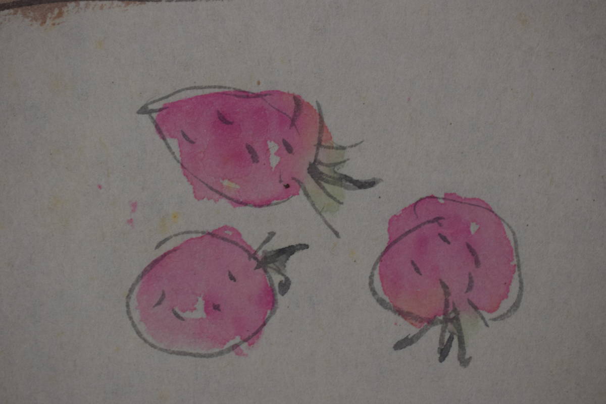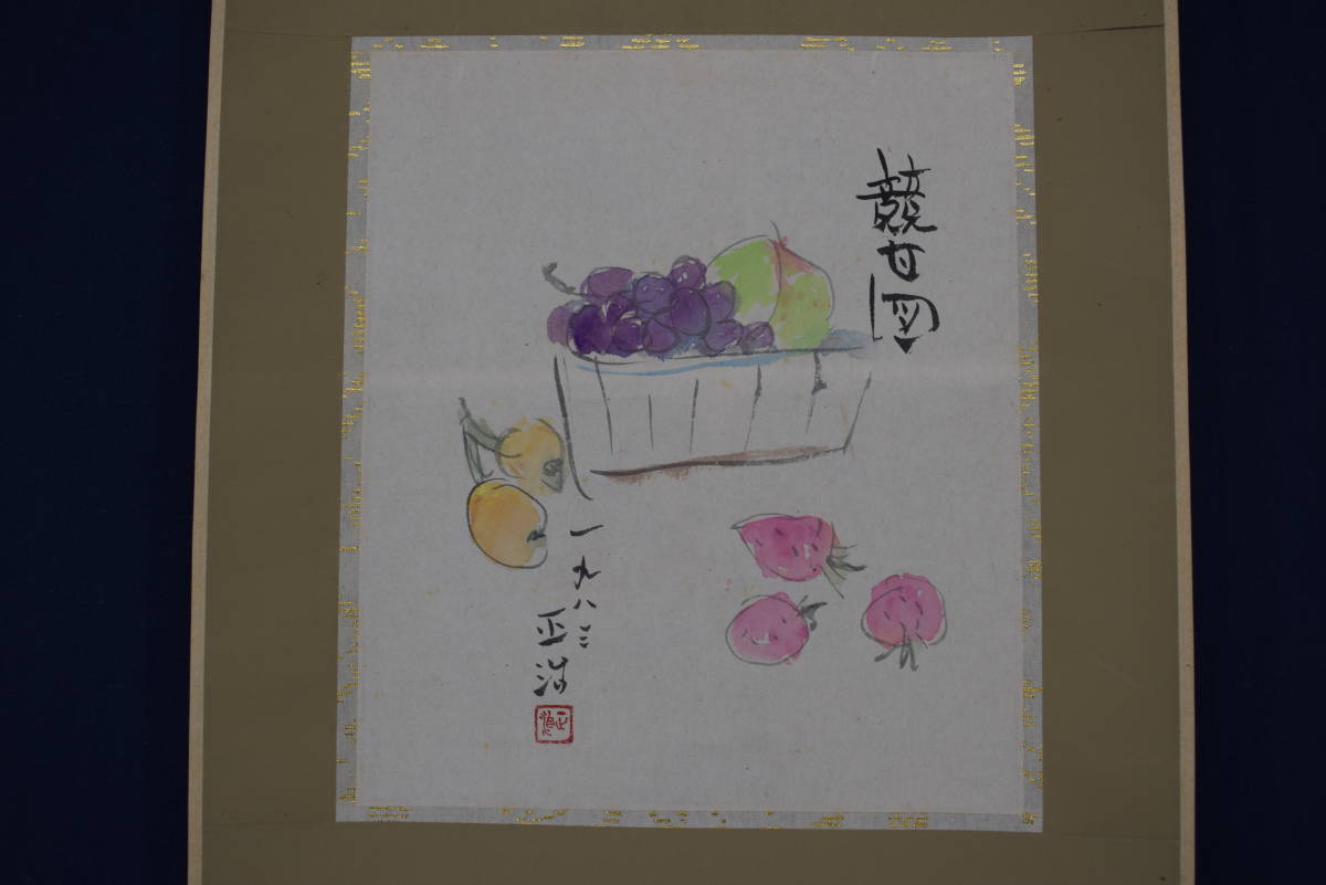 真作/作者不詳/競甘図/苺/ブドウ/ビワ/掛軸☆宝船☆X-321