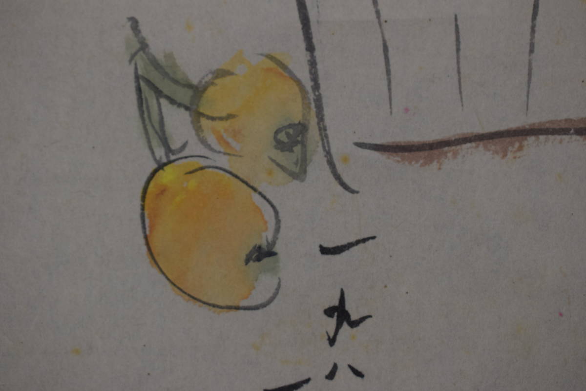 【作品状態】 本紙は紙本肉筆です。本紙は多少の薄汚れあります。表装は紙表装で、地によく目立つシミあります。