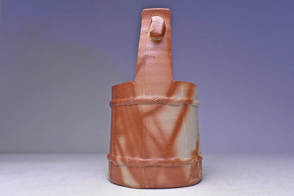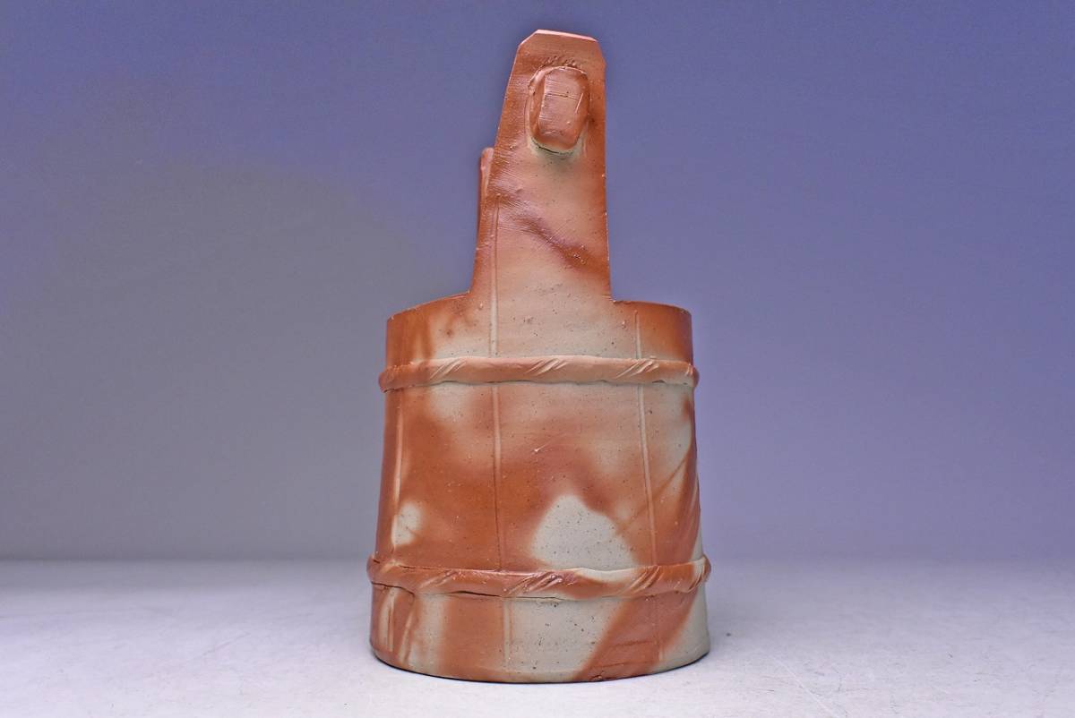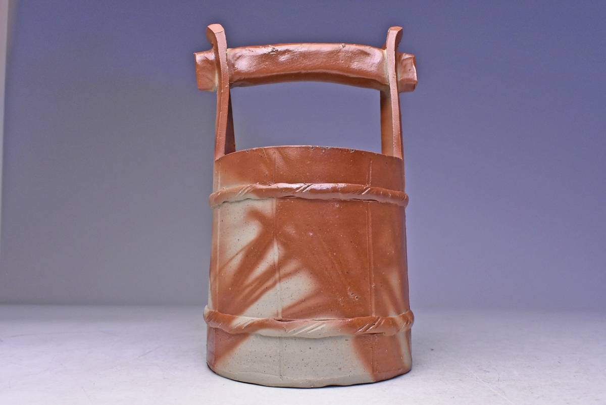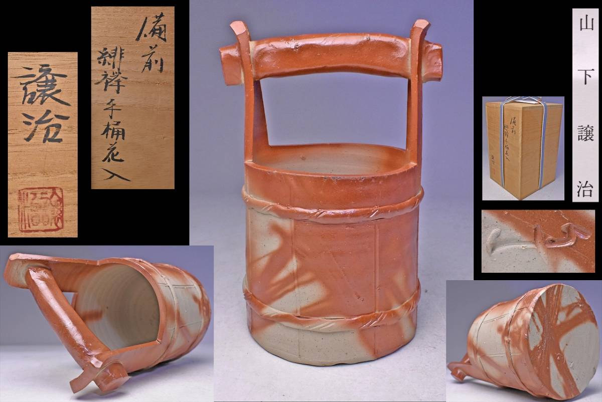 山下譲治 ★ 備前 緋襷 手桶 花入 ★ 共箱 栞 ★ 華道具 茶道具 ★ 緋色の美しい逸品 ★