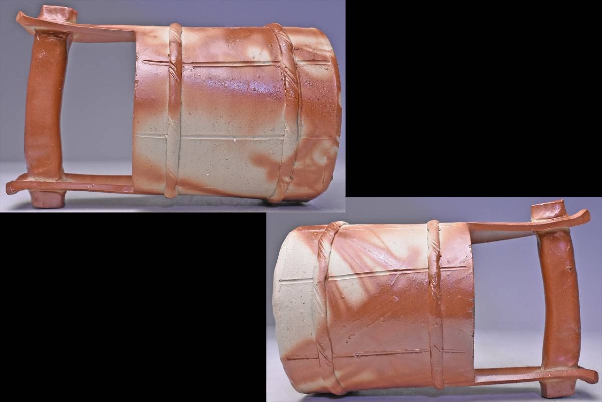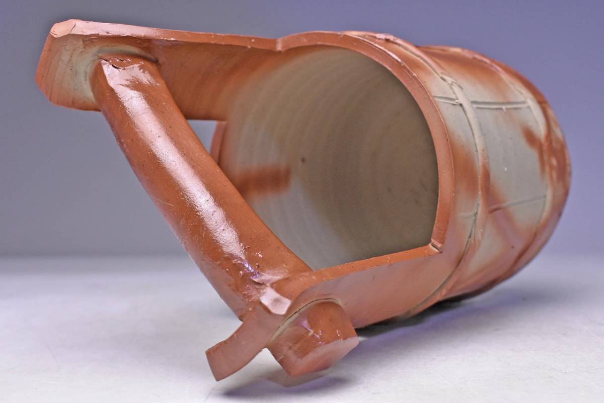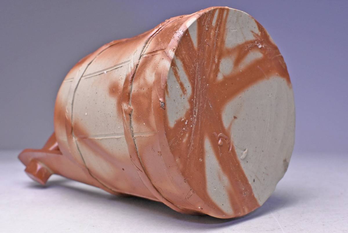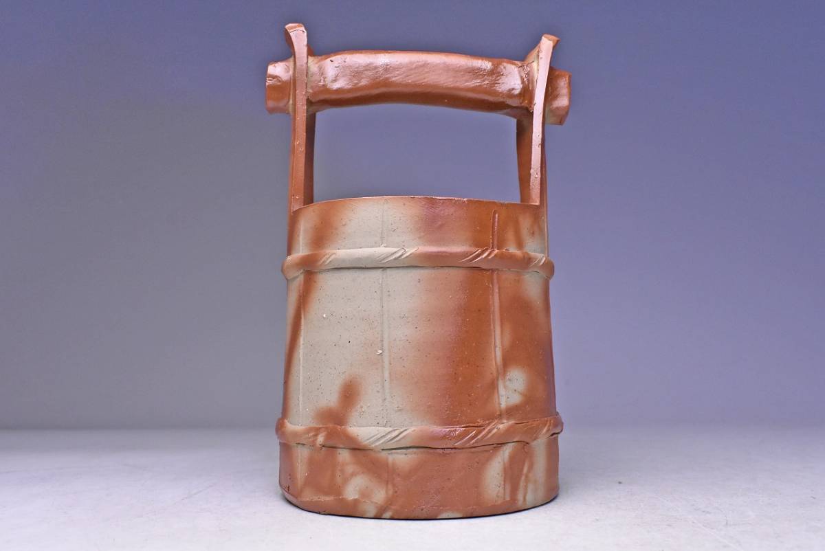 山下譲治 ★ 備前 緋襷 手桶 花入 ★ 共箱 栞 ★ 華道具 茶道具 ★ 緋色の美しい逸品 ★