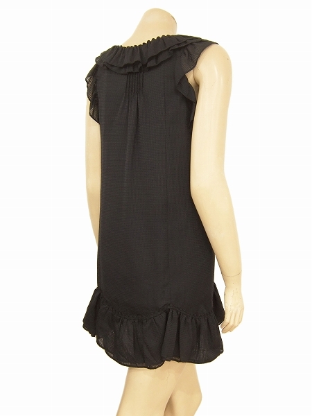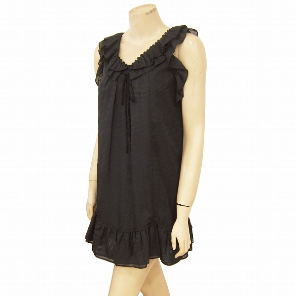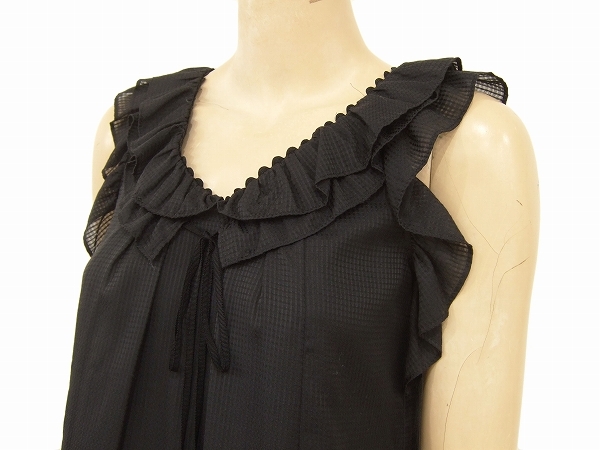 U新品同様☆ジルスチュアート*JILL STUART★黒系★リボン付き*フリル*チェック織★大人可愛いふんわりワンピース★0号