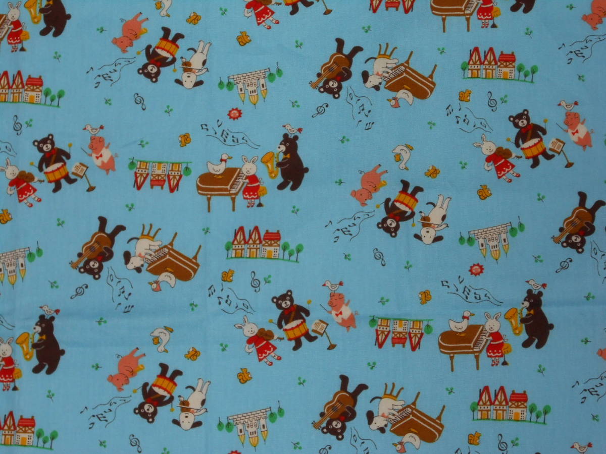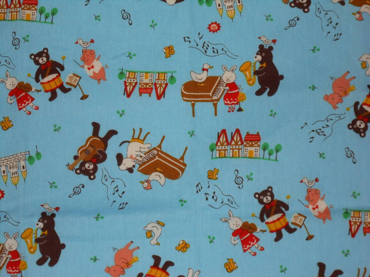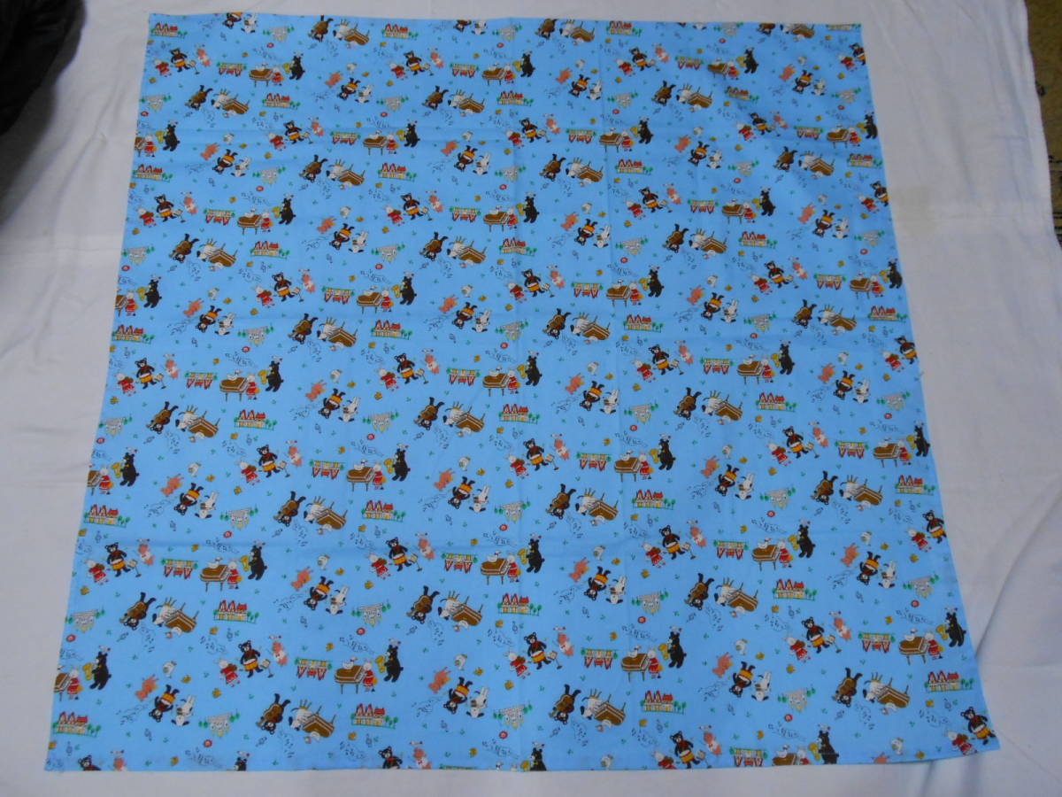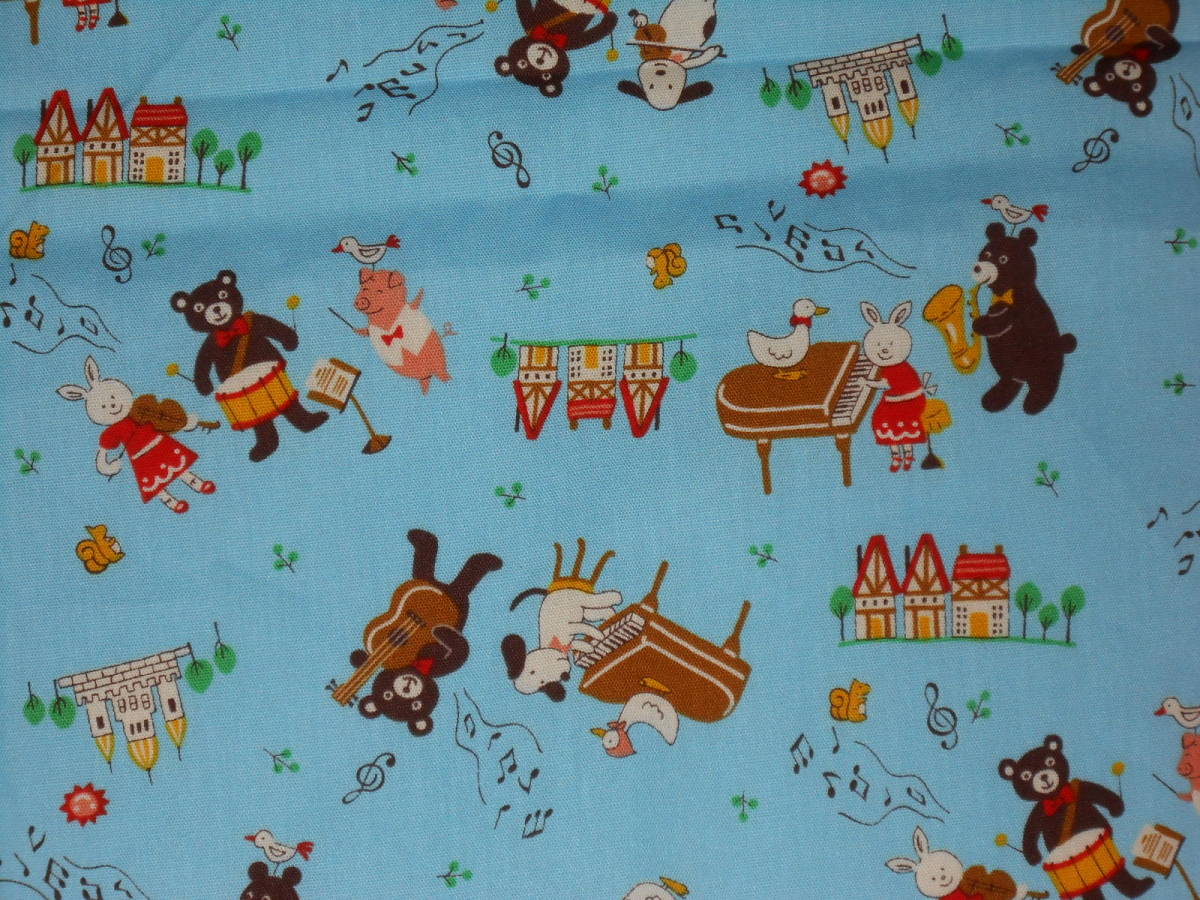 手作り、綿100%、86㎝の風呂敷、楽器を奏でる動物達、ブルー