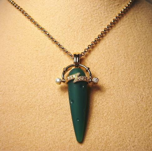 PE759:K18YG クリソプレーズ ダイヤ ペンダント