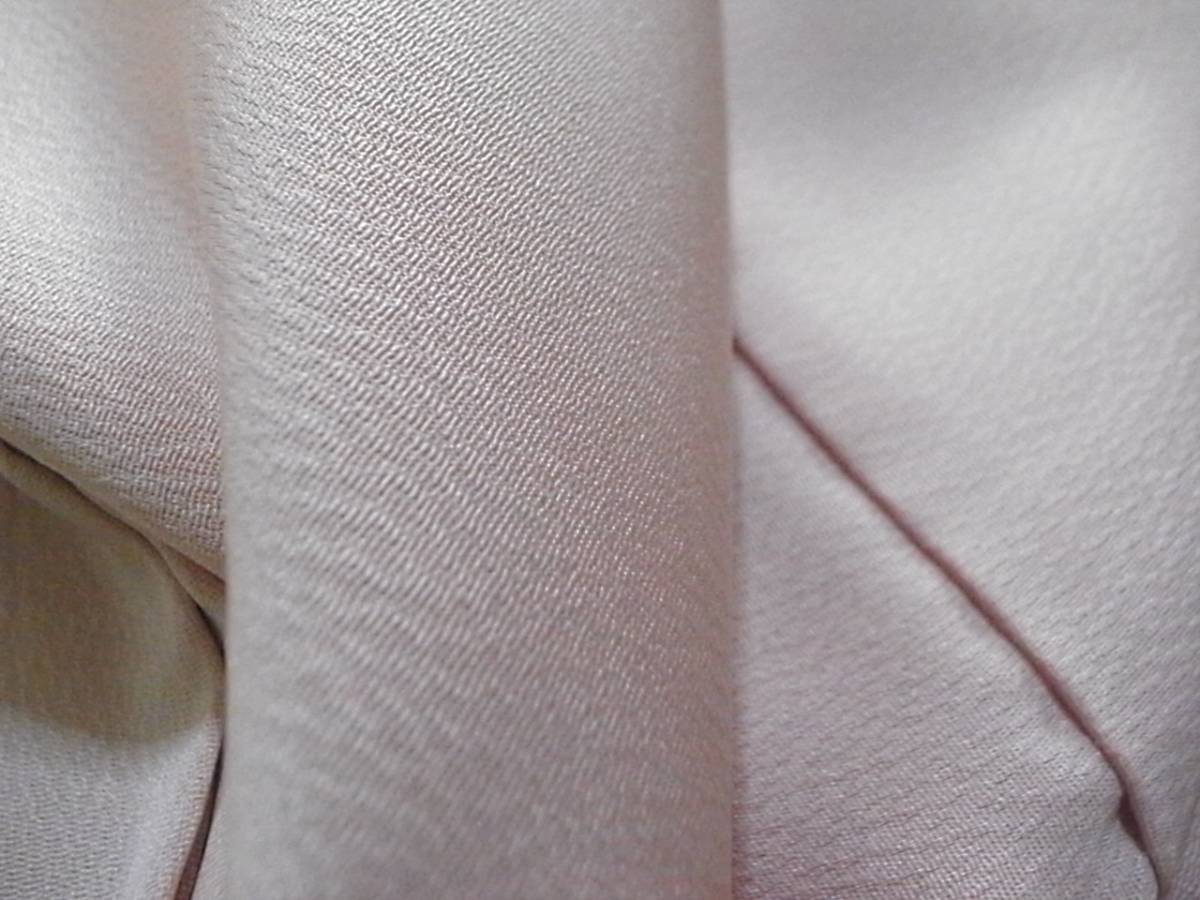 正絹羽二重風ちりめん 薄桃色地・花葉小柄 + 刺繍花柄模様