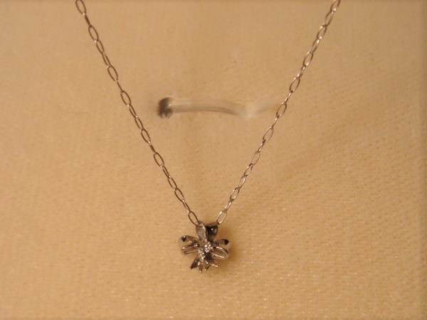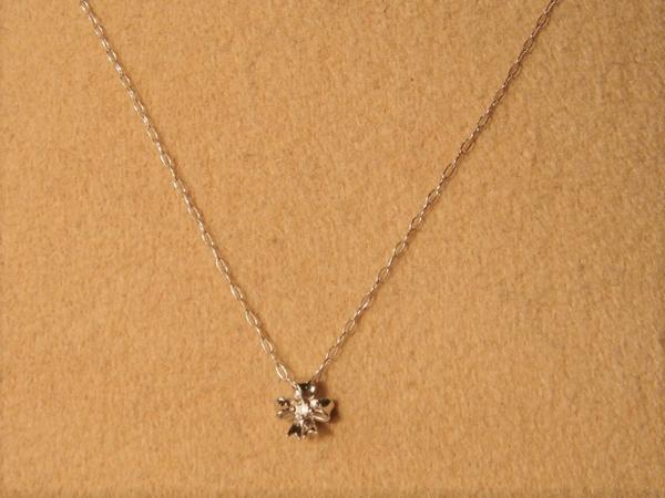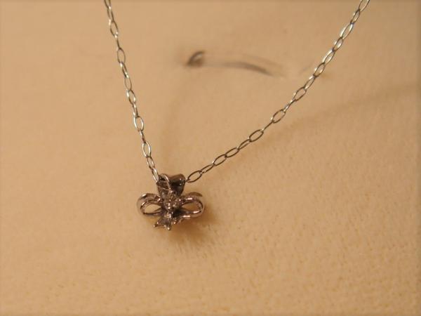 細いシンプルチェーンの先についたリボンモチーフのトップにはダイヤが1pc留まって光っています。