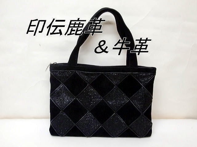 印伝鹿革&牛スエード革デザインワークトートバッグ C/№6135 S/№021BK01