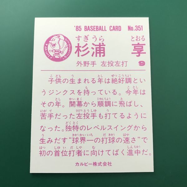 美品 1985年 カルビー プロ野球カード 85年 351番 ヤクルト 杉浦   【管理NO:3-15】