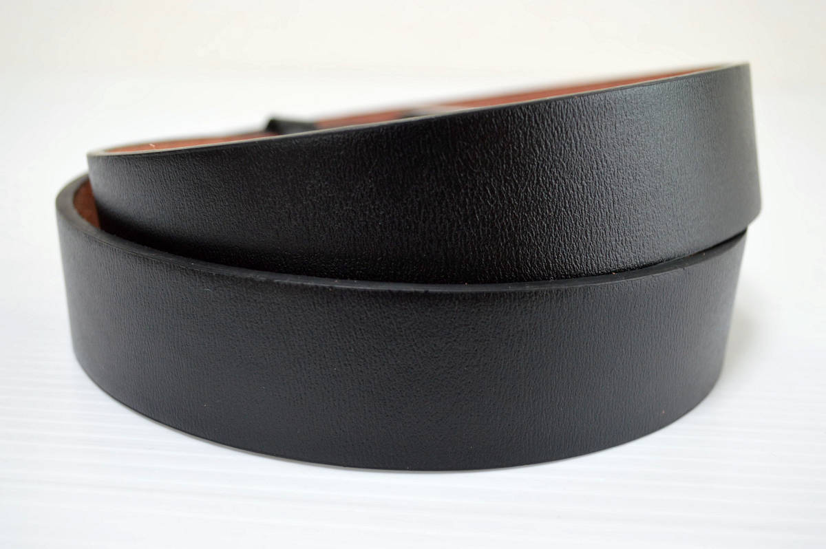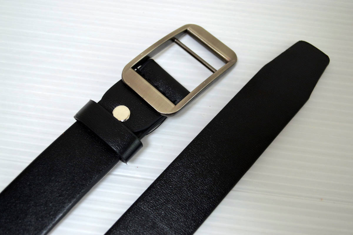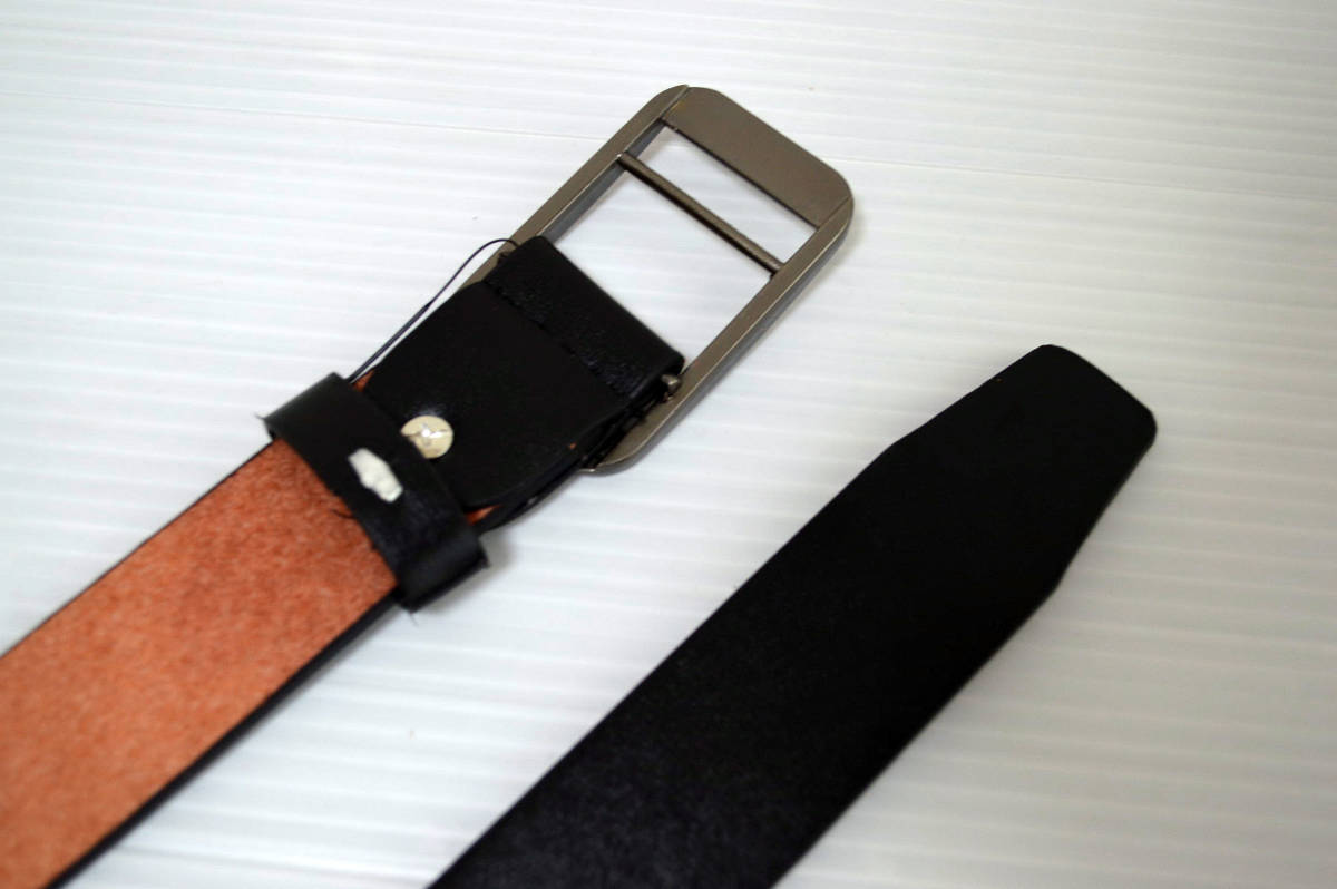 新品未使用品 帯幅33ミリのタイプです。通常のベルトでは難しかった ピンもベルト穴がなく帯をバックルに通してとめる斬新ユニークな作りとなっています。そのため、フリーサイズでの使用が可能で、季節ごとに変わる服の厚みなど多少ウエストが増しても問題ありません。しかも、ベルトの締め過ぎによる穴の摩耗という心配が要りません。シンプルなバックルを使用していますのでビジネス/カジュアル/スポーツにも兼用で使える万能ベルトです。 革は厚みのあるしなやかな合成皮革を使用しています。