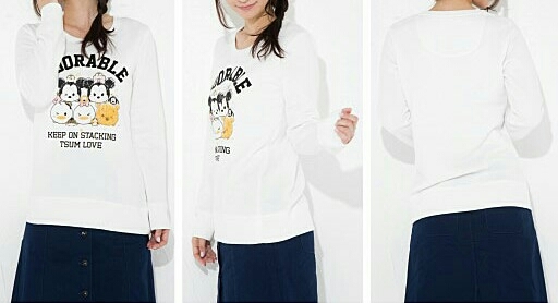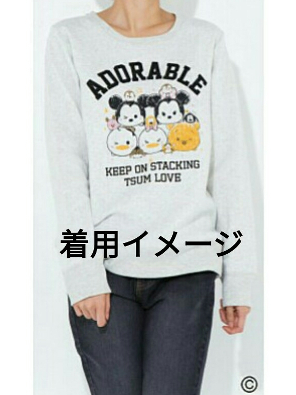 ディズニー Disney ツムツム TSUM TSUM 長袖トレーナー (本体: ポリエステル70%、綿30%(編み物)、リブ部分: ポリエステル65%、綿35%、フロッキープリント、染み込みプリント、後ろ衿ぐり杉綾テープ仕様、衿まわり&袖口&裾口部分リブ仕様)、女性LLサイズ(仕上げ寸法(約): バスト110cm、着丈68cm、肩幅43cm、袖丈60cm)、新品、未使用です。