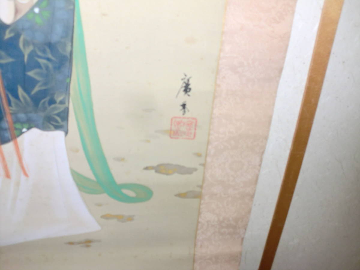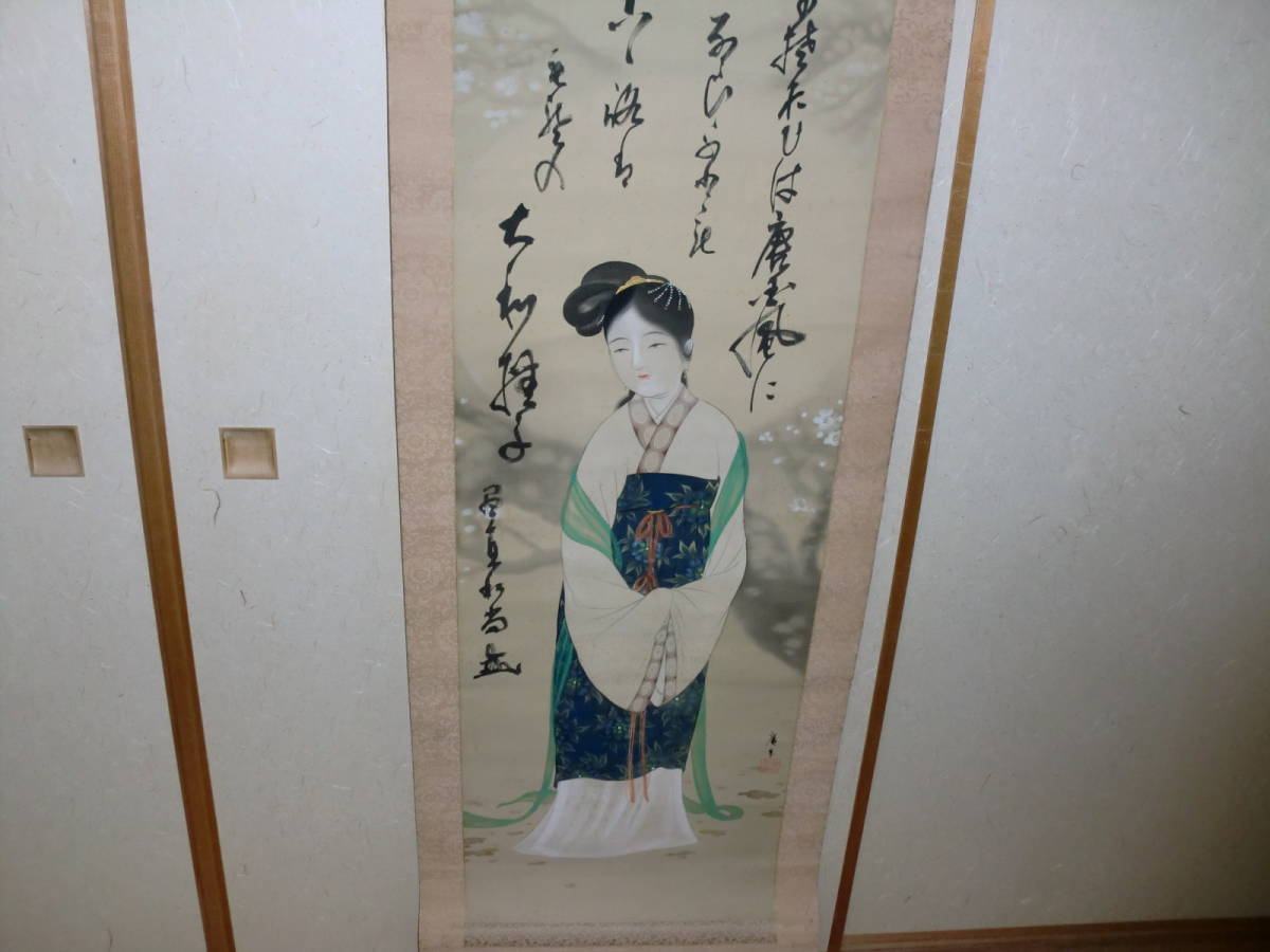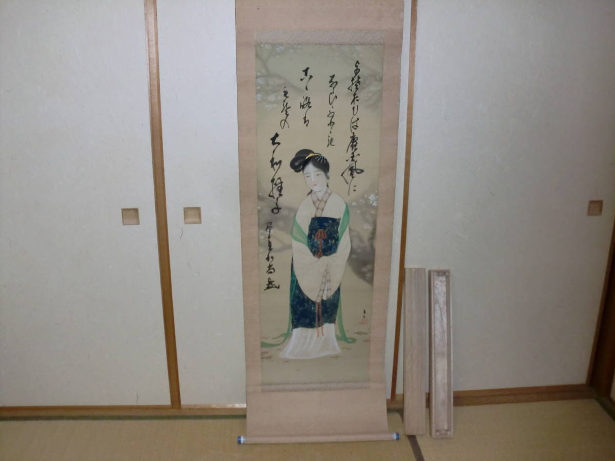 【模写】 掛軸 浦田廣香 トテモ清楚で容姿端麗な元祖大和撫子之圖 絹本 木箱 やまとなでしこ