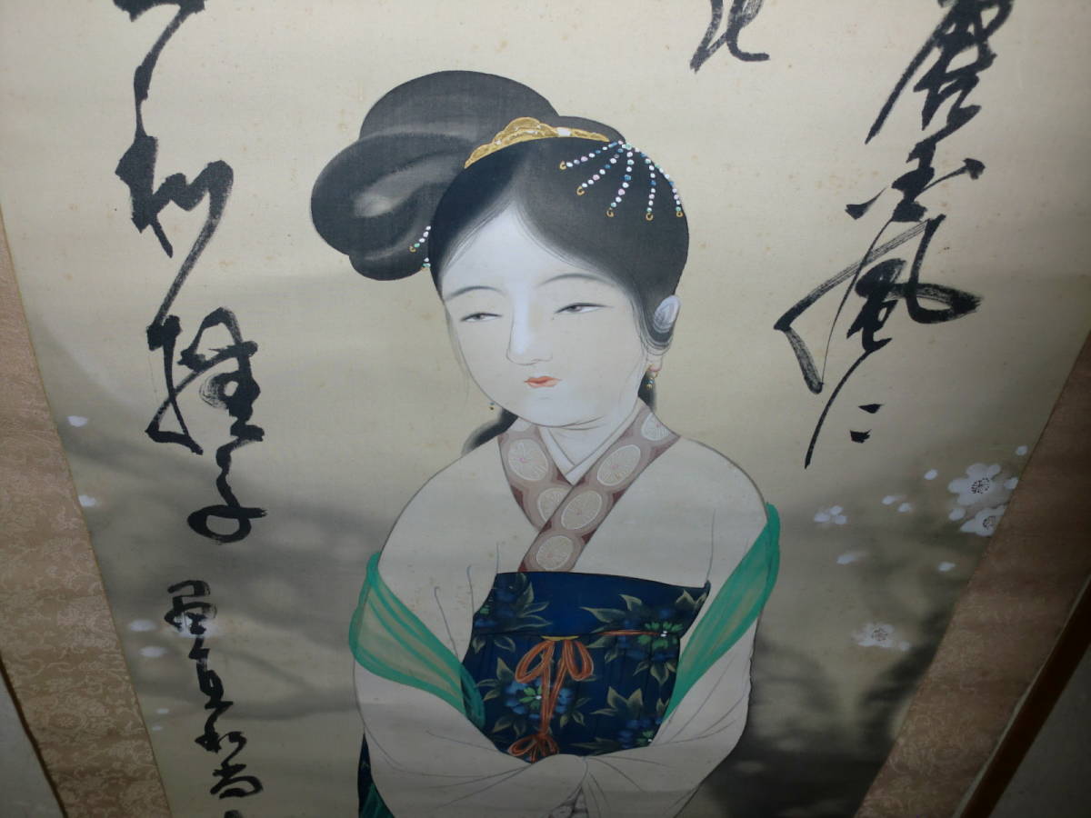 状態は、画像通りですが、古ーい作品にて 表装に微細な薄染み等あるも 本紙は綺麗なアンティークコンデイションです。