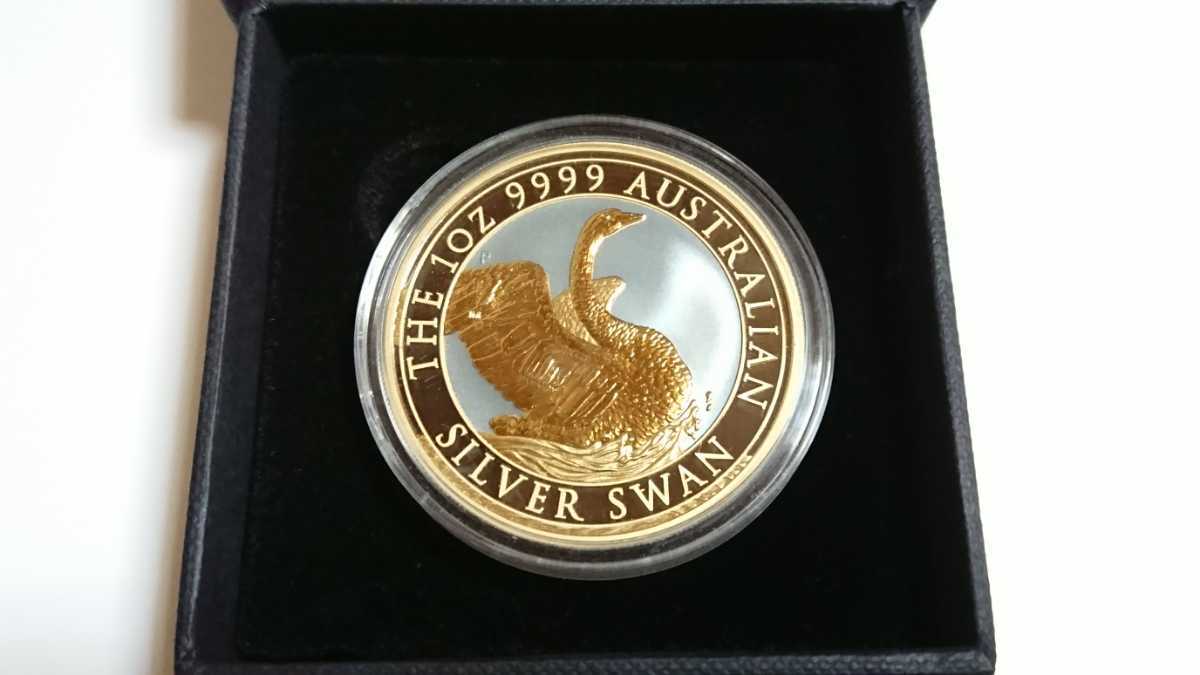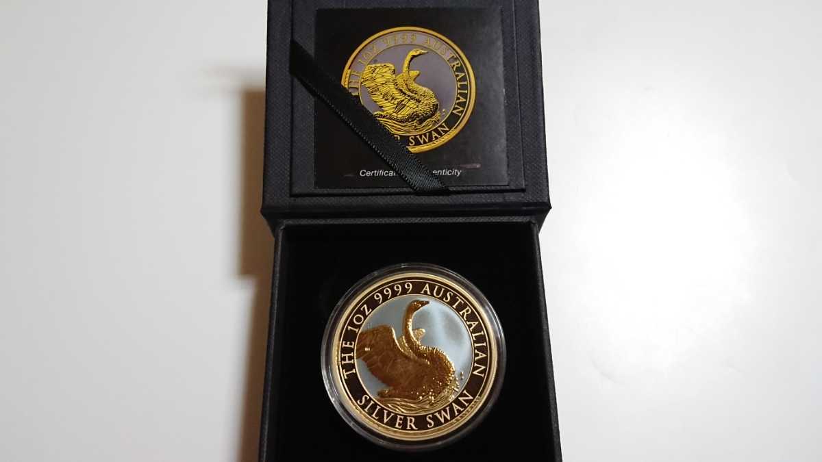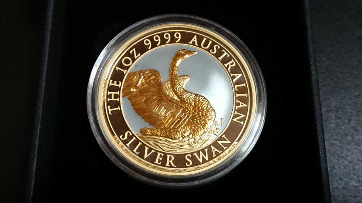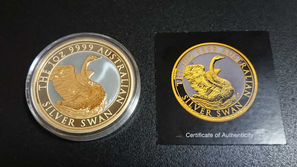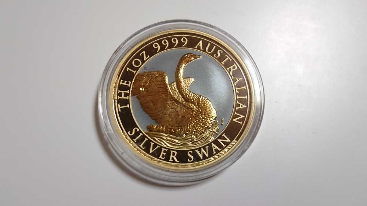 白鳥をモチーフにしたシルバープルーフ・コインがゴールドとルテニウムという金属でメッキされています。