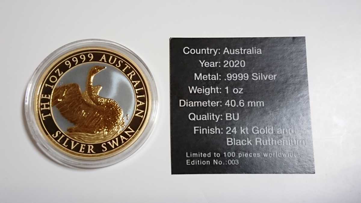 2020年にオーストラリアから発行されたスワン・ゴールドルテニウムコインです。