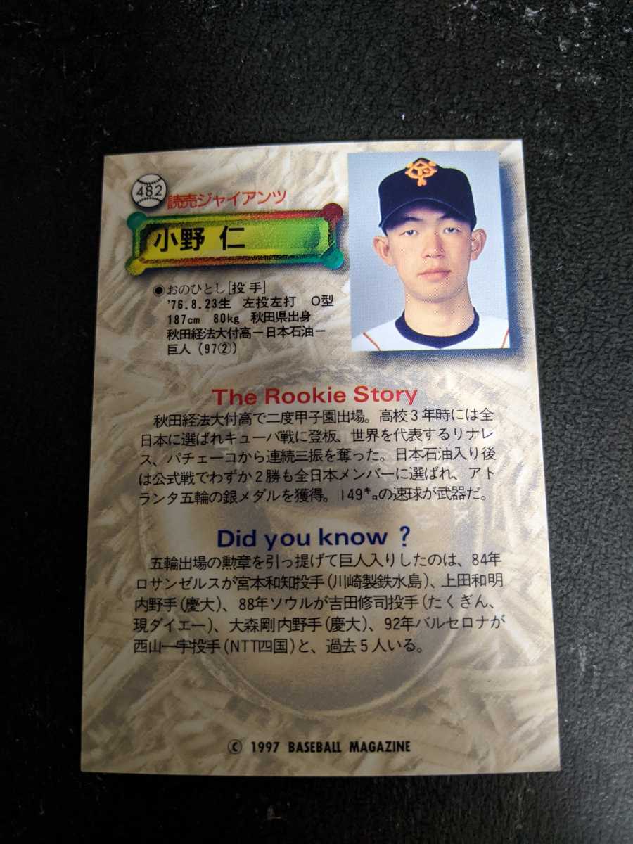 即決★BBM1997 巨人 小野仁 ルーキーカード