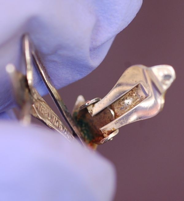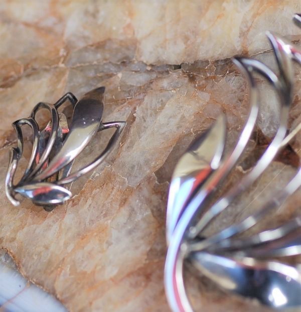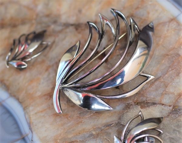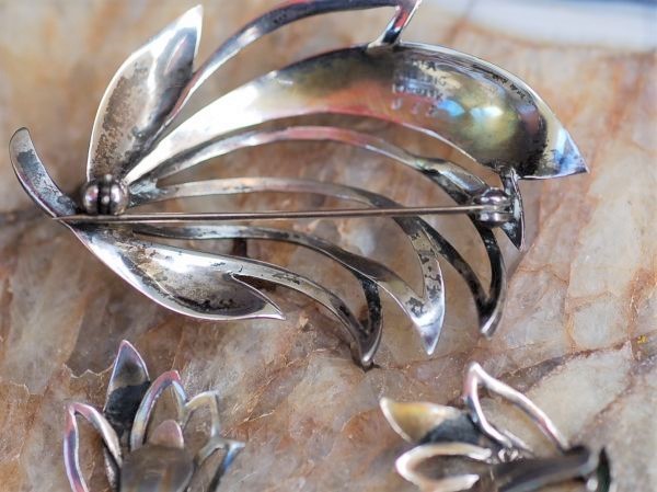 年代 :1950's~1970's辺り サイズ :ブローチ 縦 4.2cm x 横幅 6cm / イヤリング 縦 2.8cm x 横幅 2cm 素材 :スターリングシルバー(925銀) 重さ :約 15g 製造国 :デンマーク ブランド :Just Anderson アメリカで買い付けたJust Andersonのブローチとイヤリングのセットです。 デンマーク製の高級感のある、ハンドメイド作品になります。 裏面はポリッシュしておりませんので、使用感、黒ずみ等ありますが破損は無く良い状態です。 出品している全ての商品は古い物のため細かいキズや使用感はありますので ビンテージ品として理解頂ける方のみ入札下さい。 他にも世界のアンティーク雑貨等、多数出品しておりますので宜しければ マイオークションからご覧ください ↓↓↓ ![]() サイズは出来る限り正確に測っておりますが、多少の誤差はご了承ください。 写真をしっかりとご確認の上、入札して下さい。 (神経質な方はご遠慮下さい) 質問などありましたらお気軽に問い合わせ下さい。 尚、細かい写真など詳細をご希望の方は拡大写真を送りますので、質問欄にご希望の旨とメールアドレスをお載せ下さい。 (ご質問内容は公開される事はございません。ご安心下さい) | |||