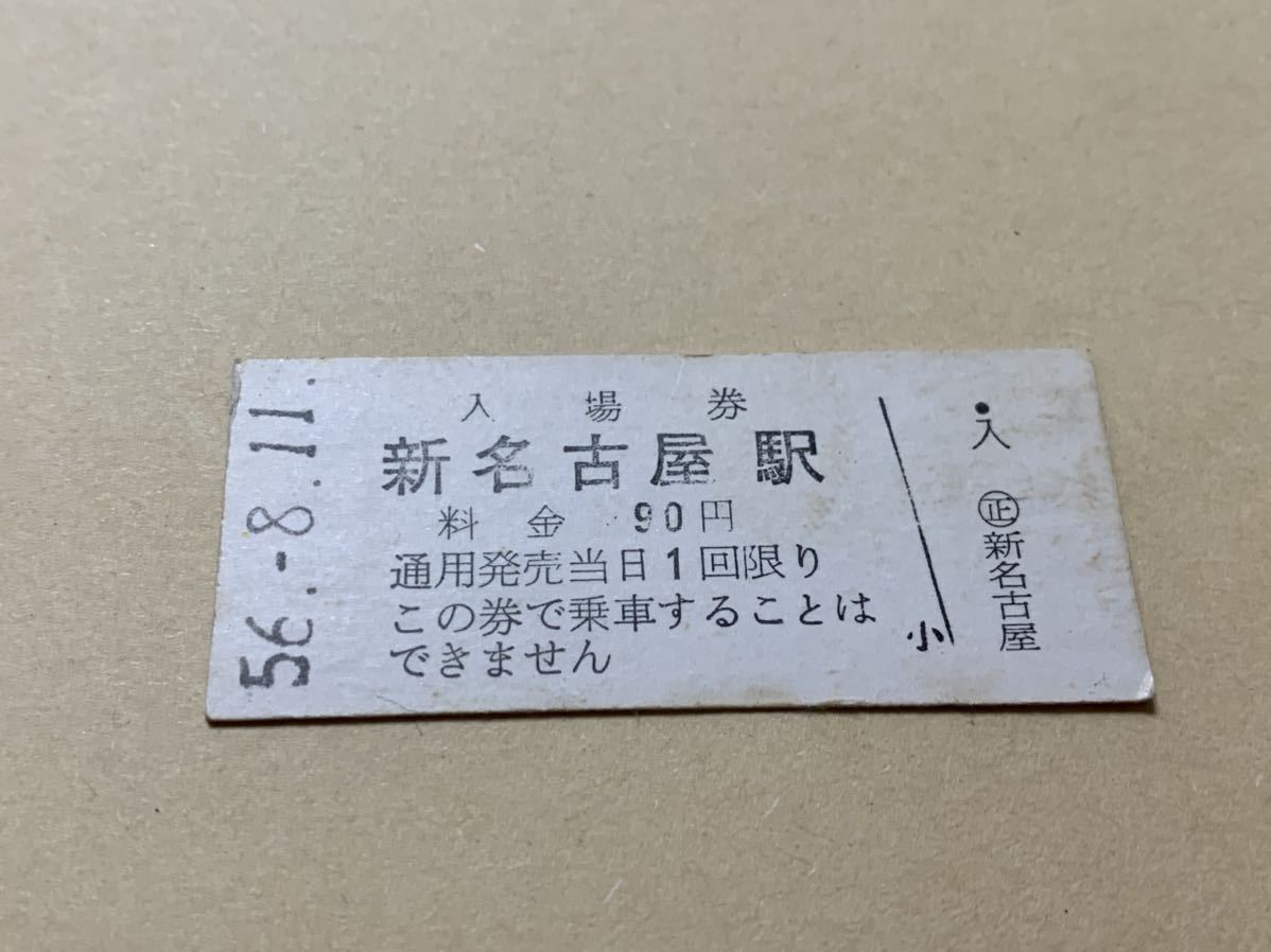 こちらは古い切符 入場券 新名古屋駅 料金90円 昭和56年8月11日です。