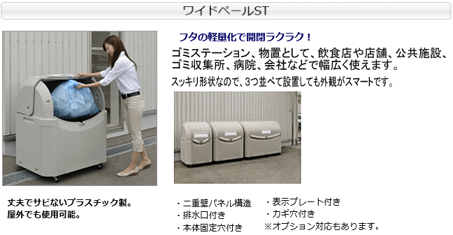 | ゴミステーション、物置として、飲食店た店舗、公共施設、ゴミ収集所、病院 会社などで幅広く使えます。 | ||||||||||