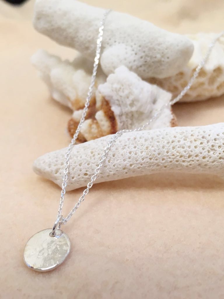 ネックレスは長さ40センチ、チャームは10ミリの大きさです。