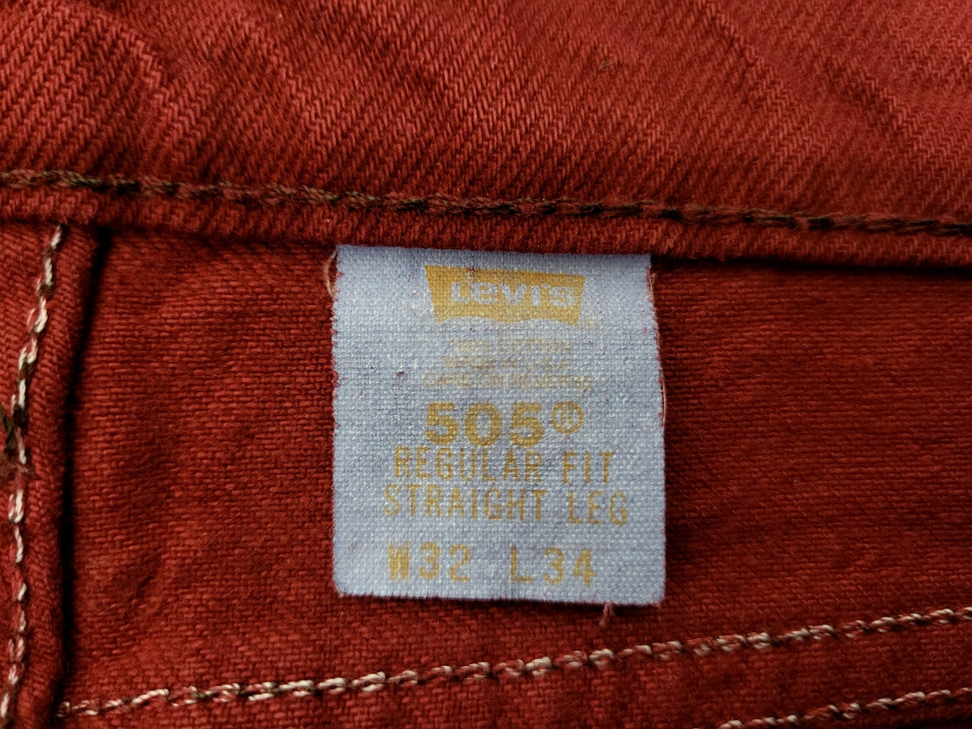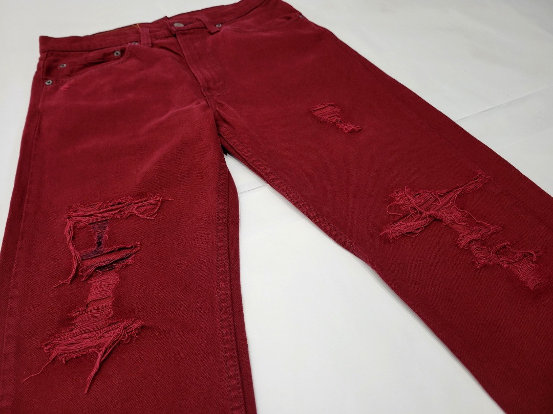 90s USA製 USA製 levi's リーバイス 505 w32 クラッシュカスタム 後染めマルーン 90年代 アメリカ製 ビンテージジーンズ
