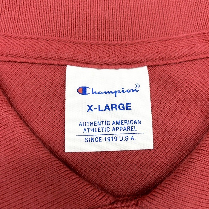 商品タイトル | Champion チャンピオン XL メンズ 男性 ポロシャツ カットソー 鹿の子 ロゴ刺繍 ワンポイント 半袖 綿100% コットン くすみレッド 赤系 |