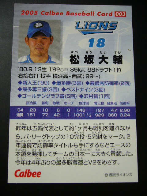 プロ野球カード カルビー 松坂大輔 西部ライオンズ LIONS 18 2005年003 レア品 .