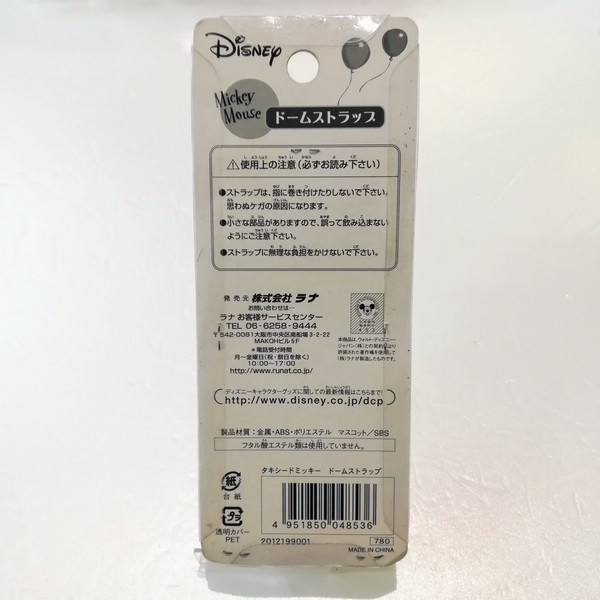 【未開封 / 即決 / 年代物 / 送料230円】 タキシードミッキー ドームストラップ ディズニー ミッキーマウス レア No.10801-3