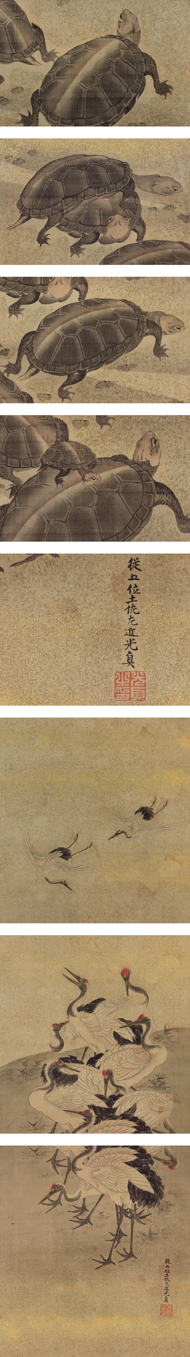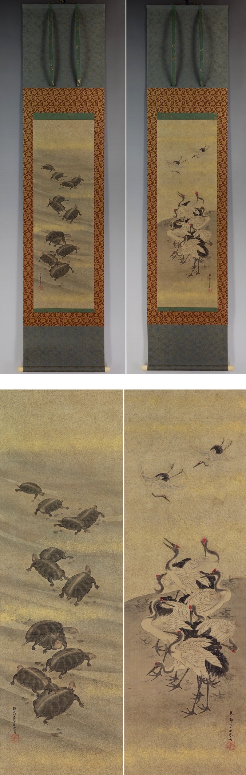 | №2105073【真作】土佐光貞【双幅・慶祝図】◆絹本◆合箱◆掛軸 | |