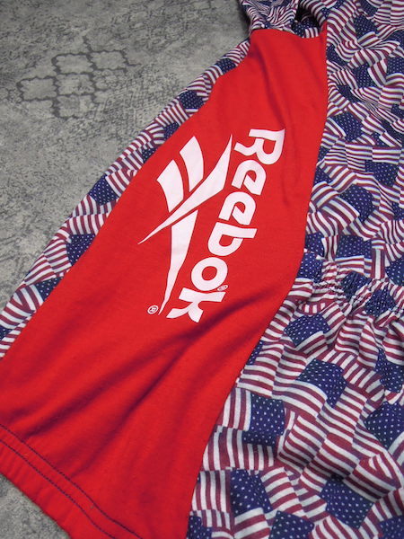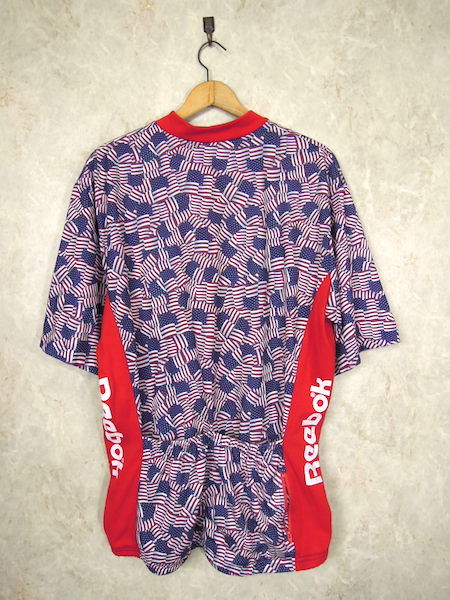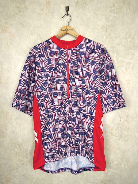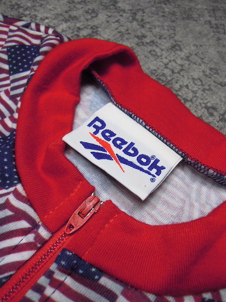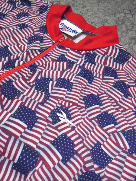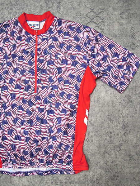 80's~90's Reebok サイクルジャージ●メンズL~XLサイズ程度/星条旗/総柄/半袖/自転車/ハーフジップ/カラフル/ビンテージ古着/リーボック